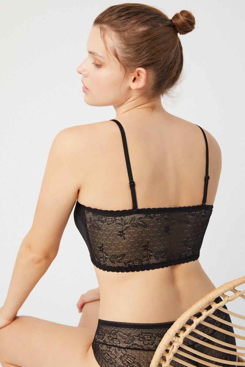 Корсетное белье из базовой коллекции 2022 от европейского производителя Ysabel Mora. Бескостная мягкая чашка формы бандо выполена из нежного кружевного материала, со съемными поролоновыми вкладышами. Бретели съемные, регулируются по длине.