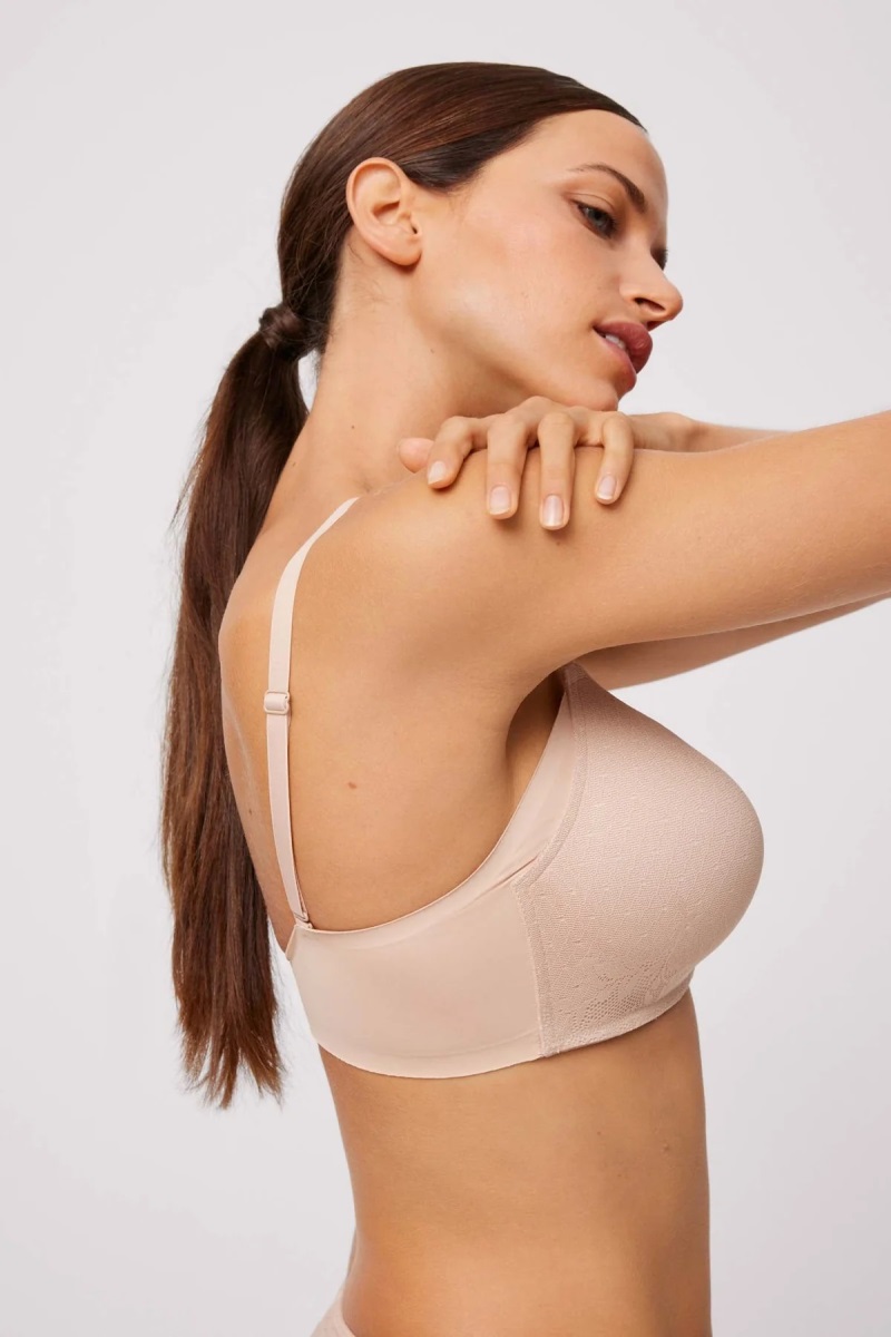 Бюстгальтер с чашкой из тонкого поролона на косточках. Чашки покрыты тонким кружевным принтом. Возможность перекрещивания спины. Сзади бретели съемные. Максимальный комфорт, универсальность и дизайн в одном бюсте. Европейский размер соответствует российскому размеру!