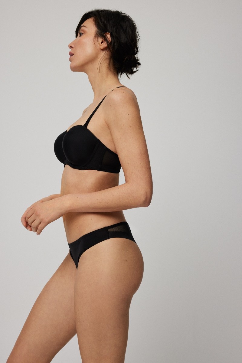 Трусы стринги. Задняя часть из сетки, передняя - гладкая эластичная ткань. Ластовица хлопковая.