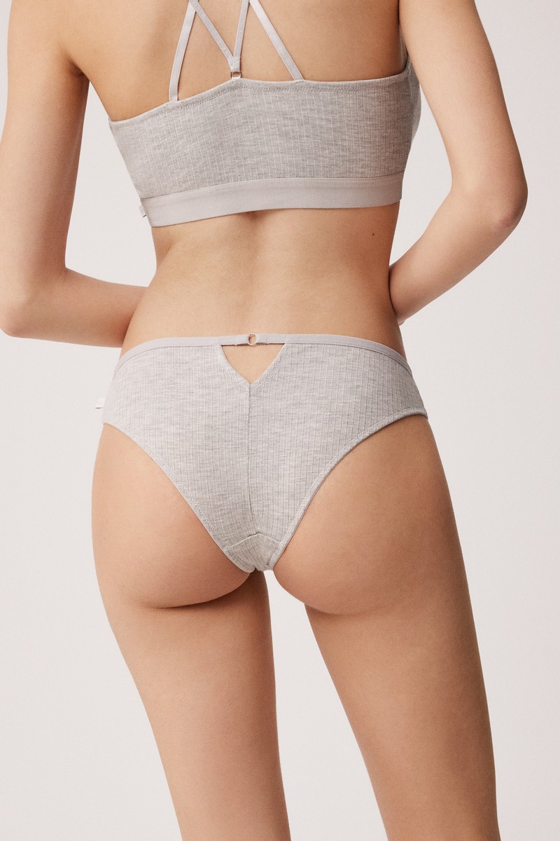 Корсетное белье из базовой коллекции 2023 от европейского производителя Ysabel Mora. Трусики бразильяно с низкой посадкой из нежного модала. Ткань в рубчик.