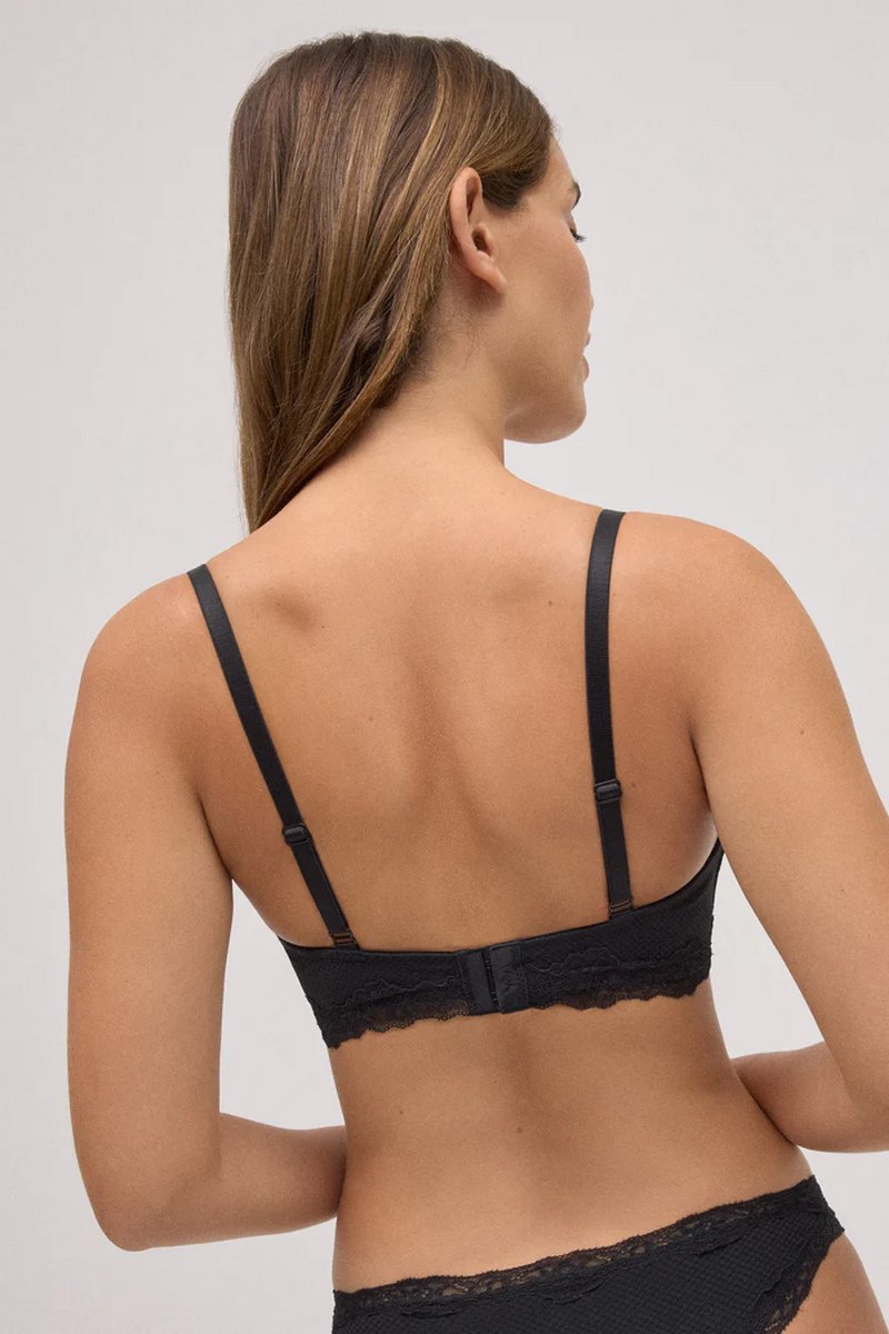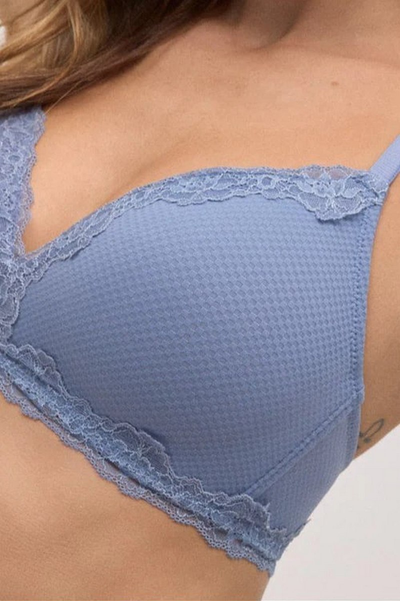Белье из фешн коллекции от европейского производителя Ysabel Mora. Чашка без кости из дышащего поролона, держит форму и отлично прилегает к груди. Тисненая ткань дополнена нежным кружевом. Бретели несъемные, регулируются по длине.