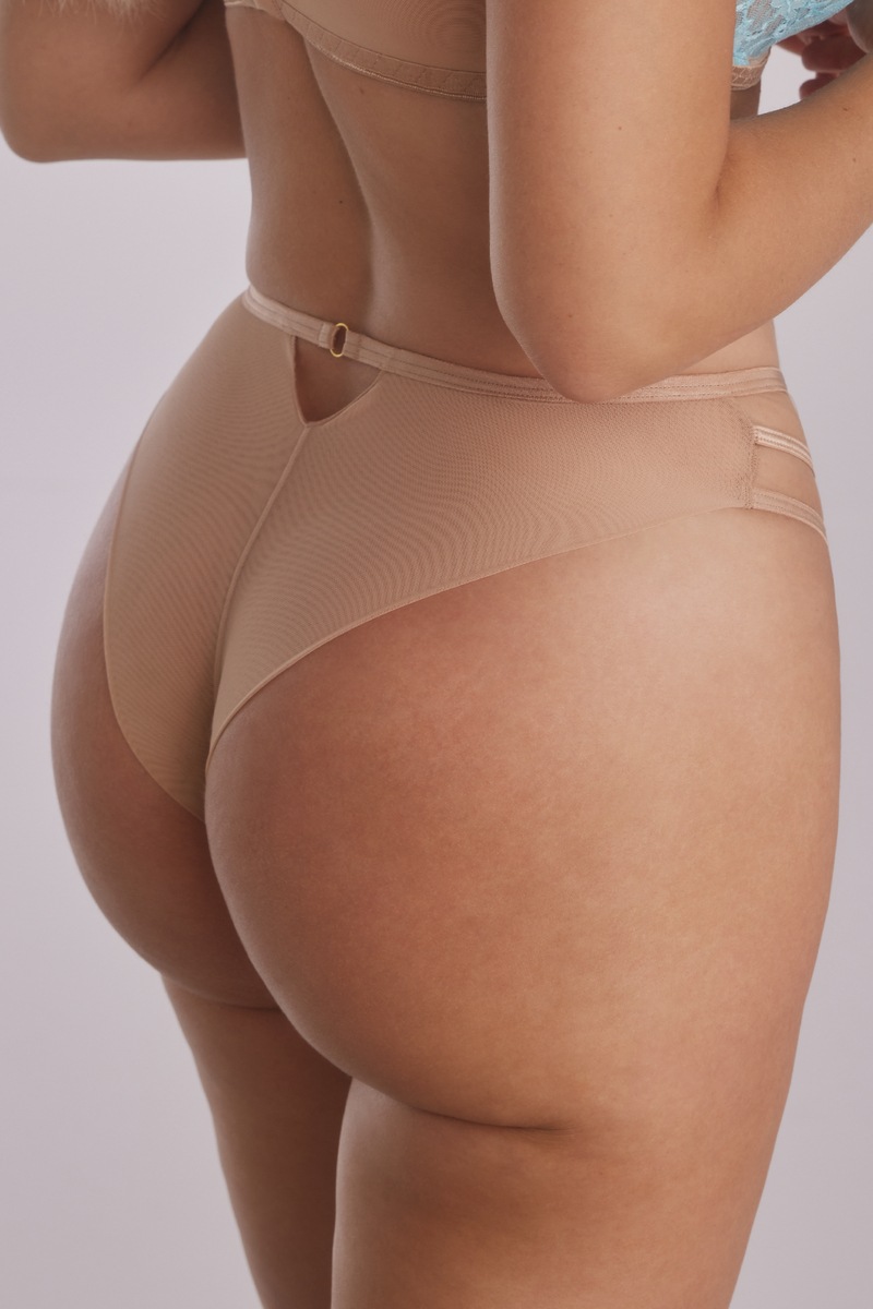 Трусы бразильяно CAMILE от европейского производителя Kinga. Спереди выполнены с дополнением из кружева, сзади из двойного микротюля.