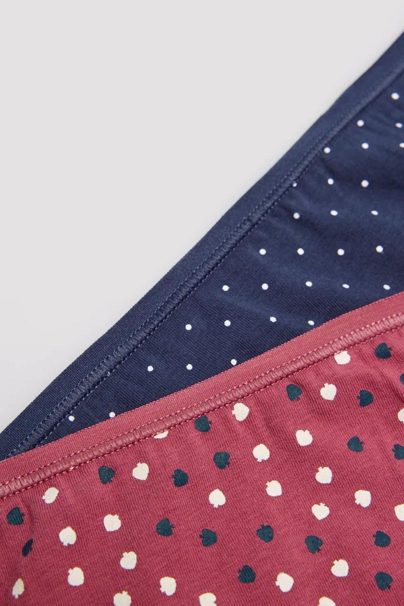 Обновите свою коллекцию нижнего белья с помощью наших хлопковых мини-трусиков в упаковке по 2 штуки. В этот комплект входят по одному трусику с каждым принтом, что предлагает вам разнообразие и стиль в повседневной жизни. На каждом трусике есть небольшой центральный бант, который добавляет нотку шарма. Эти трусики, изготовленные из мягкого и дышащего хлопка, дарят вам комфорт и прохладу в течение всего дня, сохраняя при этом комфорт и стиль.
