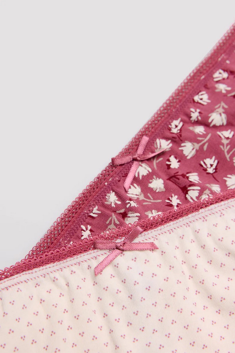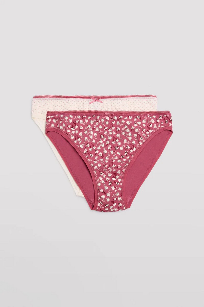 Обновите свою коллекцию нижнего белья с помощью наших хлопковых мини-трусиков в упаковке по 2 штуки. В комплект входят трусики с принтом, которые придадут вам разнообразие и стиль в повседневной жизни. На каждом трусике есть небольшой центральный бант, который добавляет нотку шарма. Эти трусики, изготовленные из мягкого и дышащего хлопка, дарят вам комфорт и прохладу в течение всего дня, сохраняя при этом комфорт и стиль.