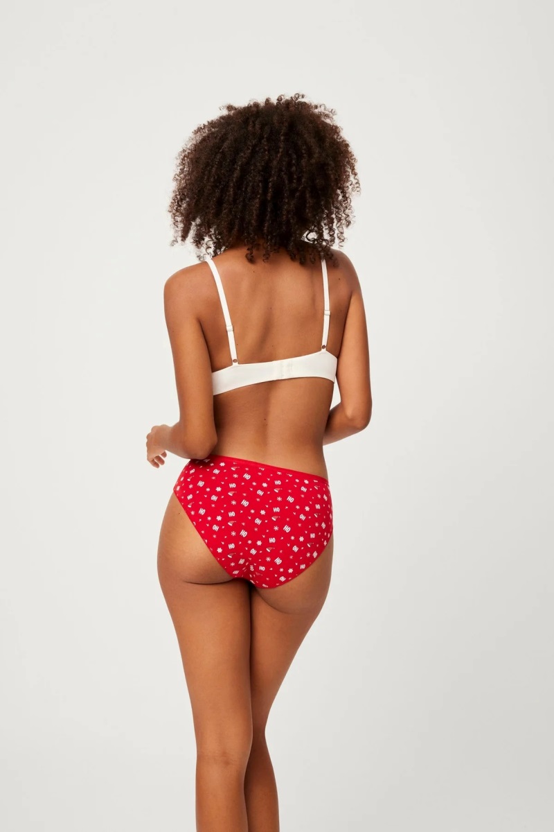 Рождественская коллекция. Красные трусики слипы из натурального хлопка с рождественским принтом. Рождественская упаковка, идеально подходящая для подарков.