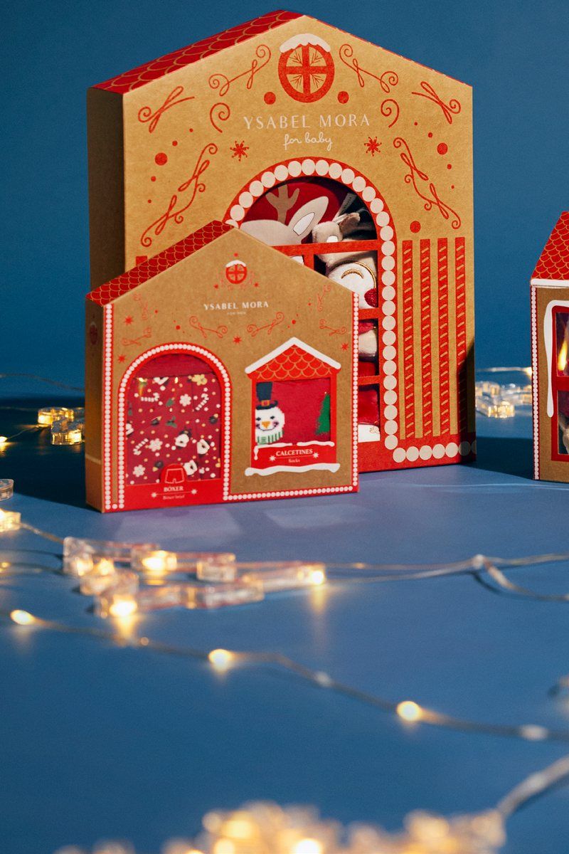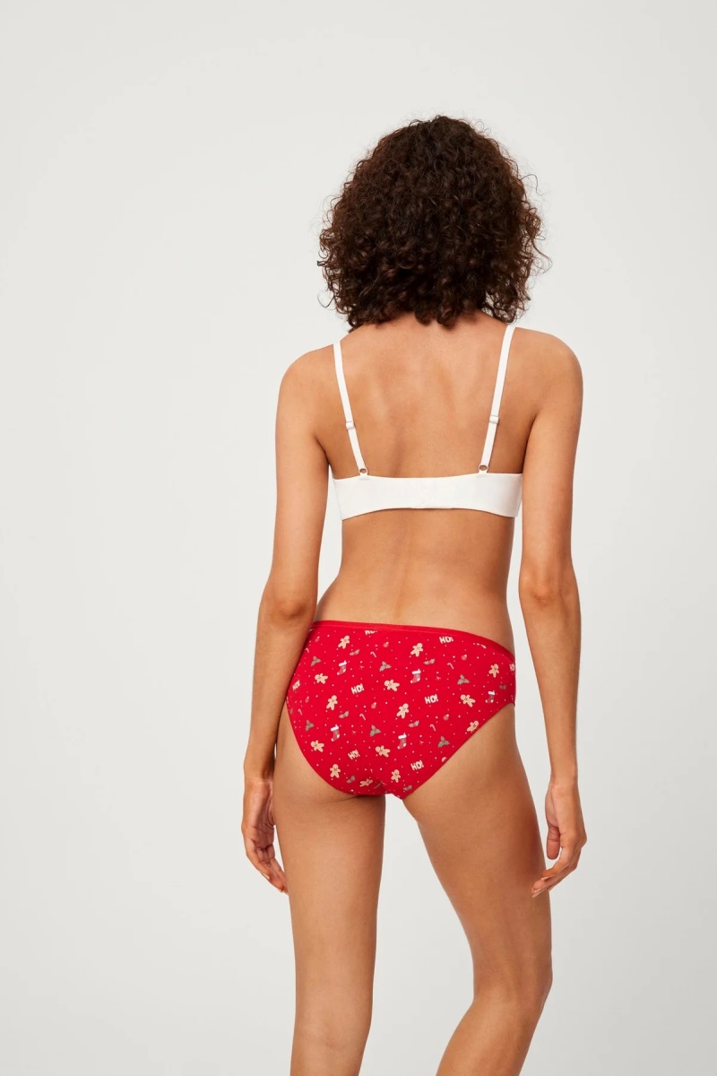 Красные трусики слипы из натурального хлопка с рождественским принтом. Рождественская упаковка, идеально подходящая для подарков.