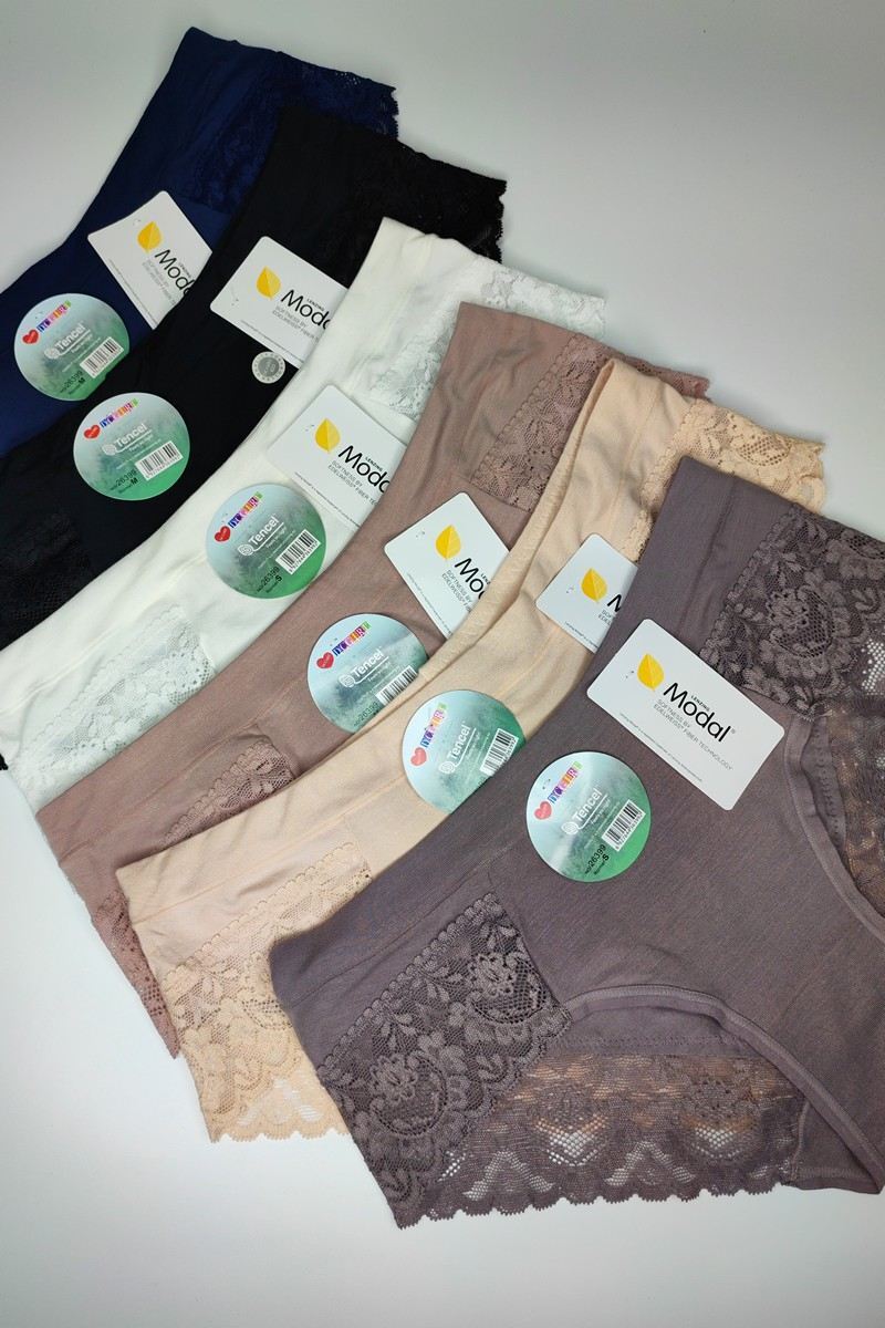 Женские трусики, изготовлены из мягкого модала. Нежное эластичное кружево по краям изделия. Классическая посадка. В упаковке 12 штук. Размеры в упаковке (S-2шт, M-4шт, L-4шт, XL-2шт), различные цвета.