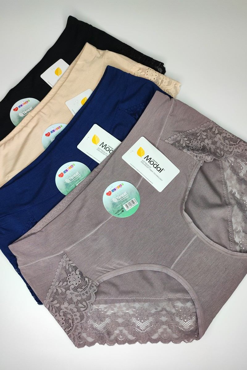Женские трусики, изготовлены из мягкого модала. Нежное эластичное кружево по краям изделия. Высокая посадка. В упаковке 12 штук. Размеры в упаковке (S-2шт, M-5шт, L-2шт, XL-3шт), различные цвета.