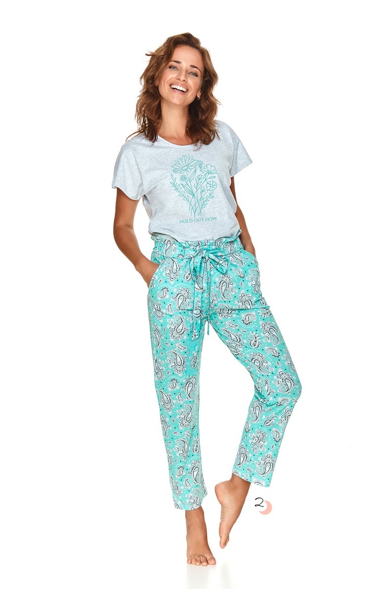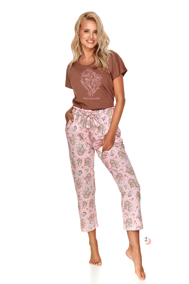 Женская молодежная пижама IRINA от европейского производителя Taro. Футболка с коротким рукавов. Капри комфортной посадки с боковыми карманами.