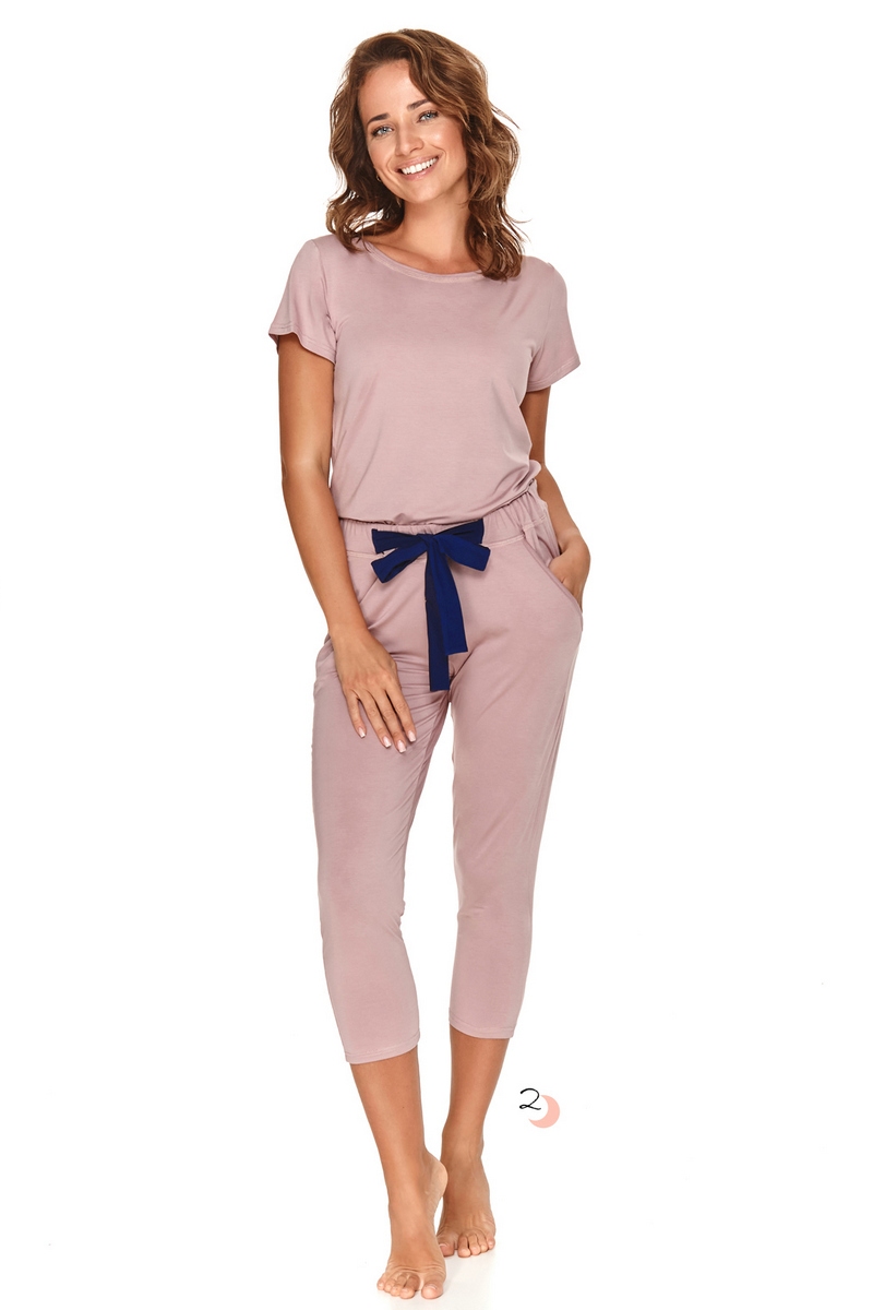 Женская пижама DASZA от европейского производителя Taro. Футболка с коротким рукавом, капри с боковыми карманами и эластичным поясом дополненным бантом.