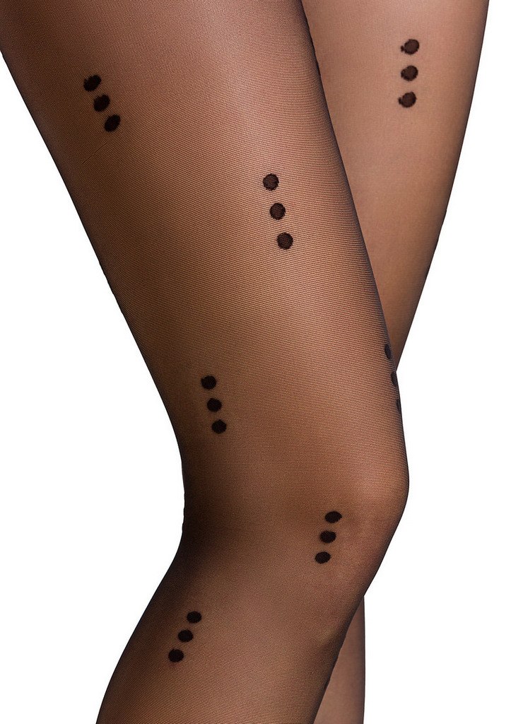 Колготки Vivi со смелым рисунком из трех точек, расположенных по вертикали по всей длине. Волокно Lycra вдвойне окутан шелком poliamidowym, используемые в этой модели, благодаря нежной, плотной структурой, очень мягкие и бархатистые на ощупь, одновременно, делает колготки более прочными и более устойчивыми к пыхтеть. Отсутствие выделенной части majteczkowej, невидимым усиление на пальцах и хлопковый клин с плоским швом обеспечивают удобство и комфорт использования. Волокно из лайкры вдвойне окутано полиамидным шелком, нежная, плотная структура, очень мягкие и бархатистые на ощупь, одновременно как и прочные. Отсутствие выделенной части, невидимое усиление на пальцах и хлопковый клин с плоским швом.