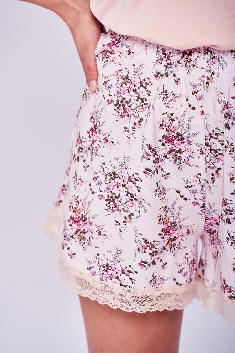 Женская пижама с шортами JULIET от европейского производителя Taro. В комплекте свободнаяоднотонная майка и узорные шортики на резинке с кружевом по нижней кромке.