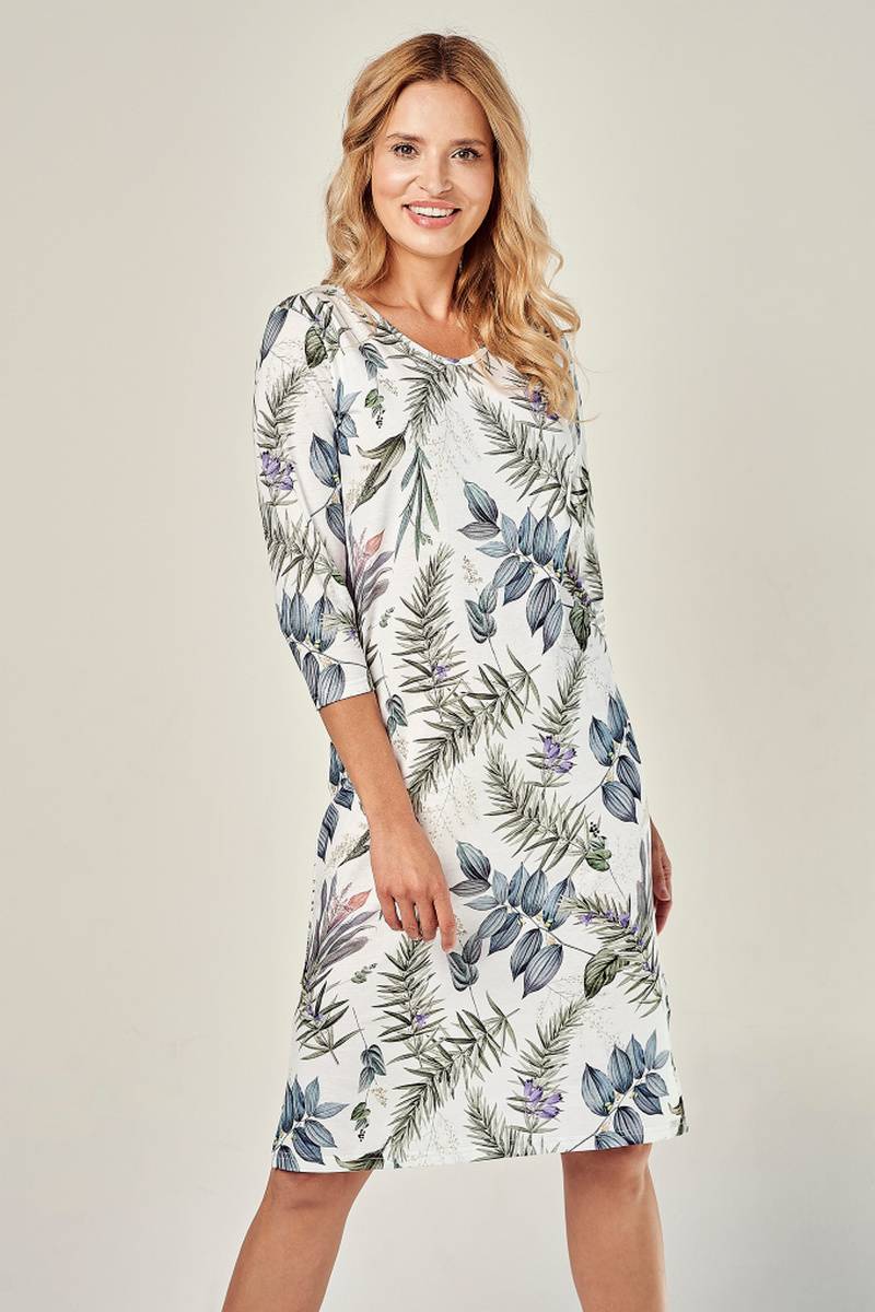 Женская сорочка ARIANA от европейского производителя Taro. Изделие с рукавом 3/4, с боковыми разрезами по подолу. Принт в цветочном мотиве.