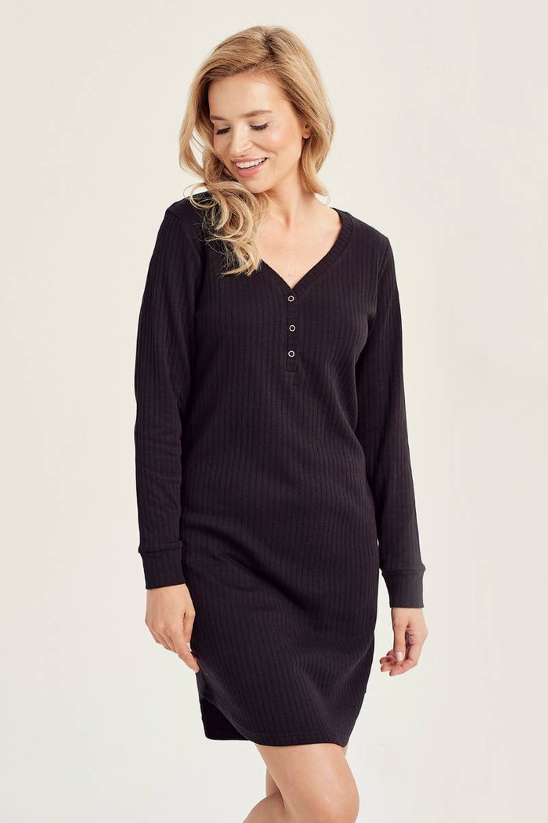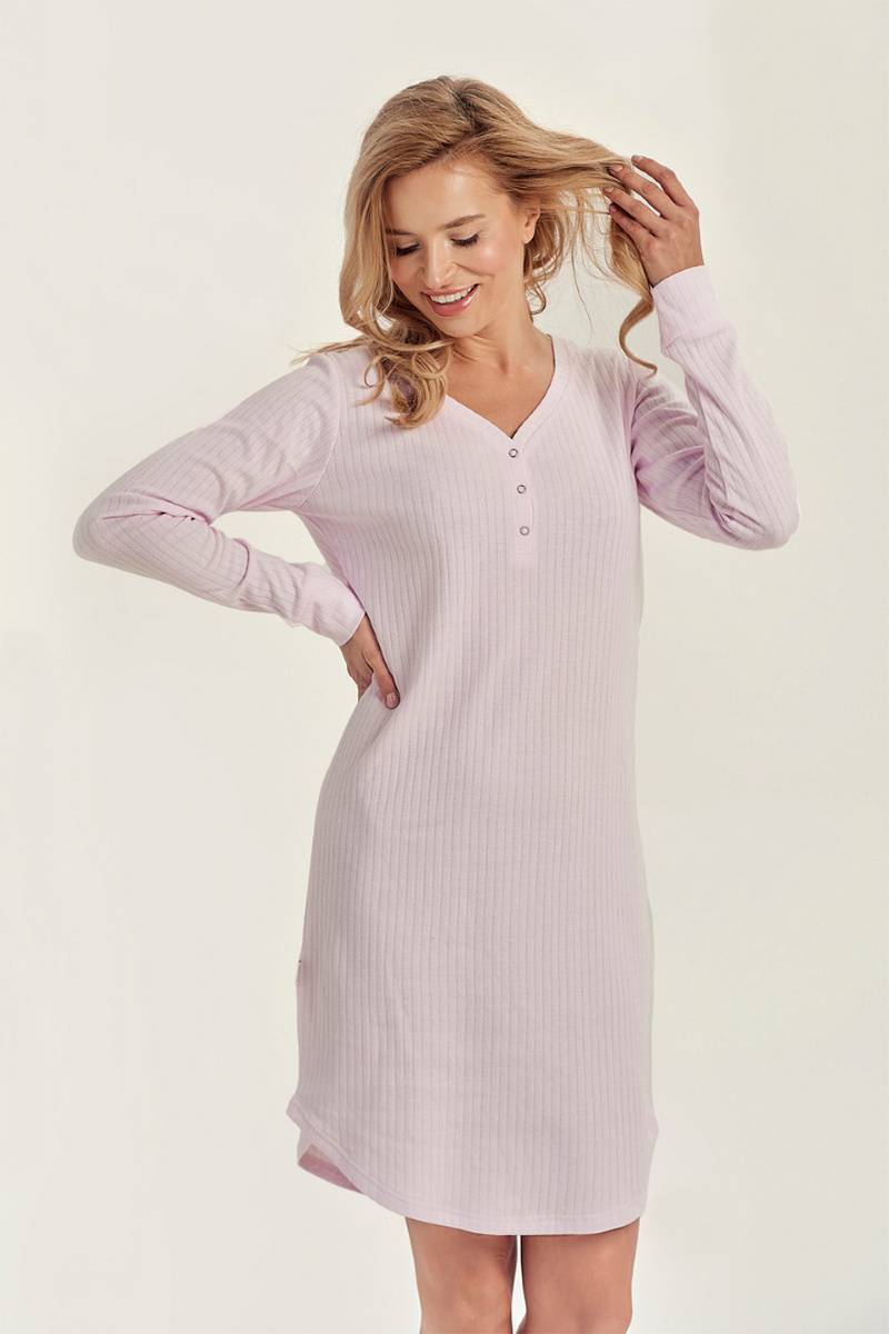 Женская сорочка SISI в стильный рубчик от европейского производителя Taro. Изделие с длинным рукавом и планкой из пуговиц на груди.