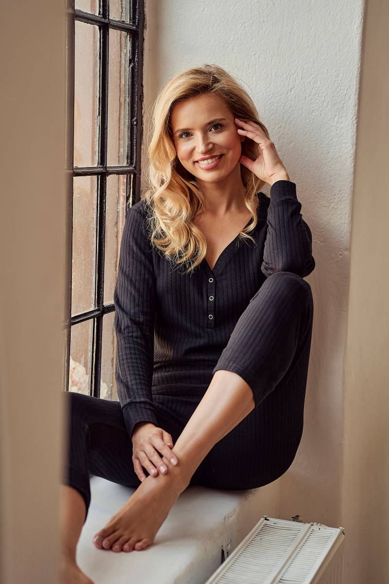 Женская пижама со штанами SISI в стильный рубчик от европейского производителя Taro. В комплекте кофта с длинным рукавом и планкой из пуговиц и штаны 7/8.