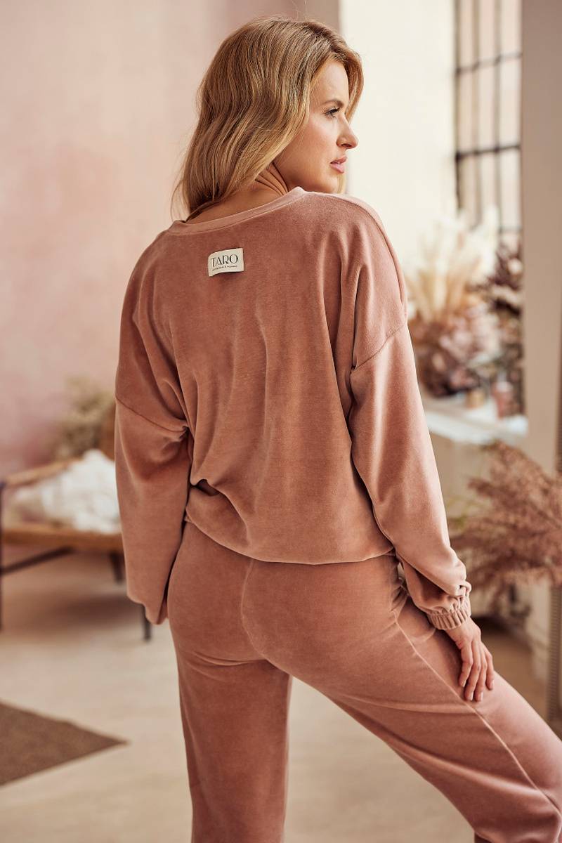 Комплект женский со штанами BELLE из нежного велюра от европейского производителя Taro. В комплекте кофта с длинным рукавом и штаны с карманами.