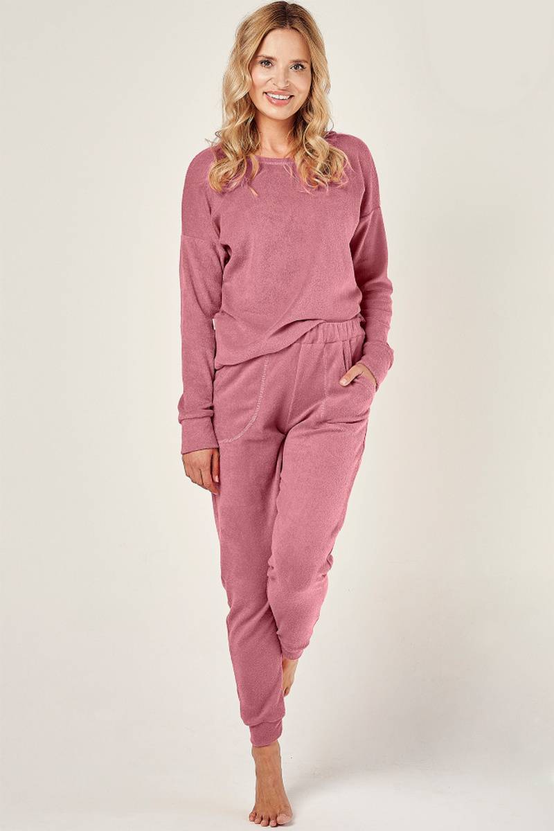 Женская пижама со штанами DAVINA от европейского производителя Taro. В комплекте кофта с длинным рукавом и штаны с карманами. Изделие выполнено из махровой ткани.