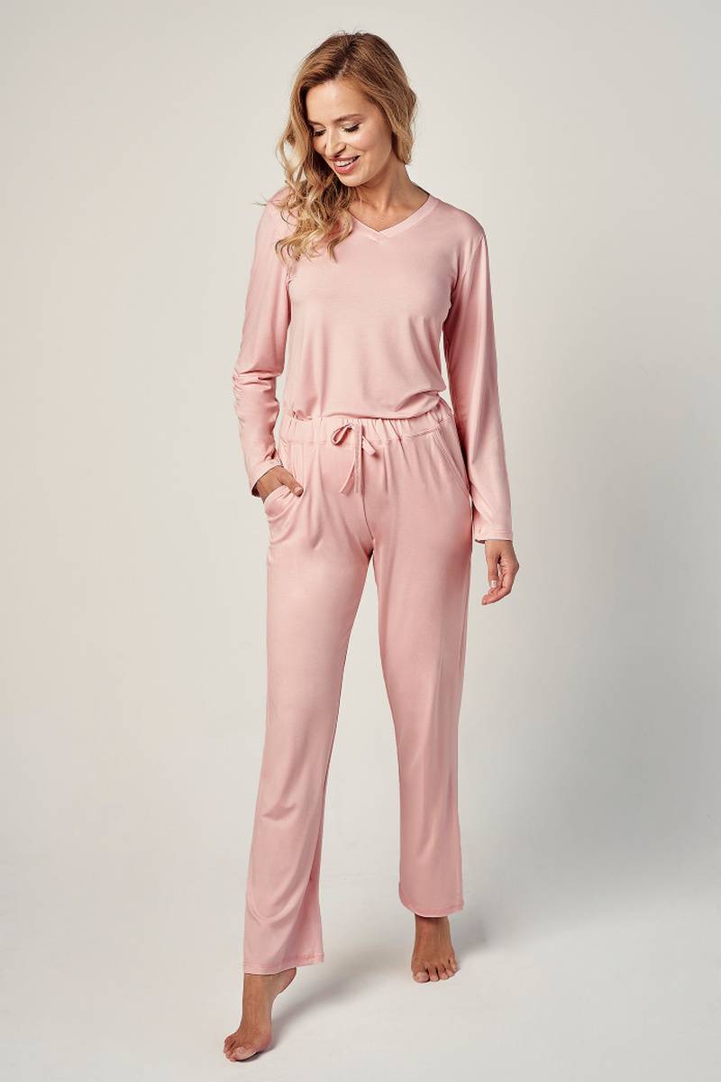 Женская вискозная пижама со штанами RIVER от европейского производителя Taro. В комплекте кофта с длинным рукавом и штаны с карманами.