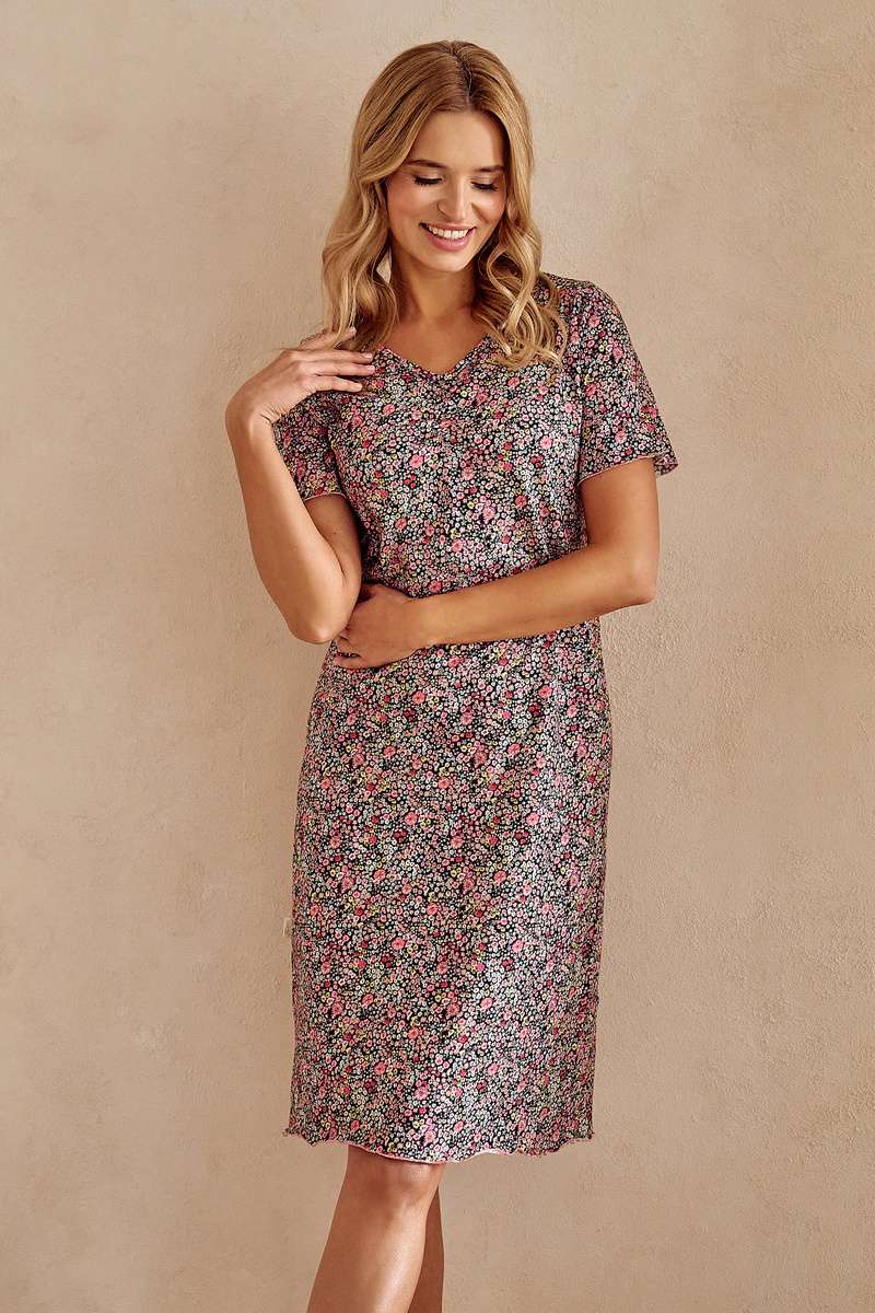 Хлопковая женская сорочка AMARA от европейского производителя Taro. Изделие с цветочным принтом. Короткий рукав, V-образный вырез горловины.