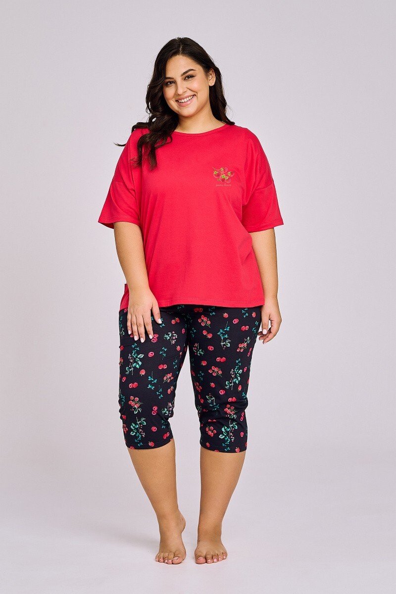 Женская хлопковая пижама DORA от европейского производителя Taro. Футболка с коротким рукавом. Капри средней посадки с эластичной резинкой на поясе.