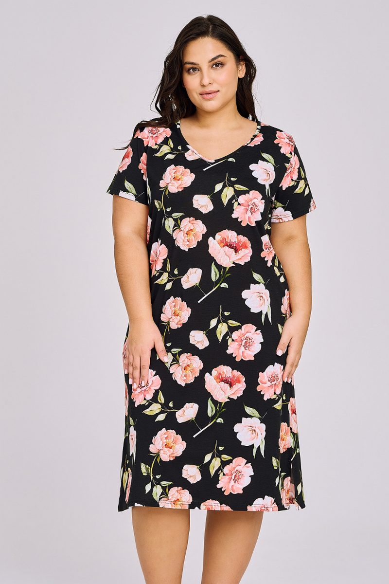 Хлопковая женская сорочка PEONY от европейского производителя Taro. Сорочка с цветочным принтом, рукав короткий, V-образный вырез горловины.