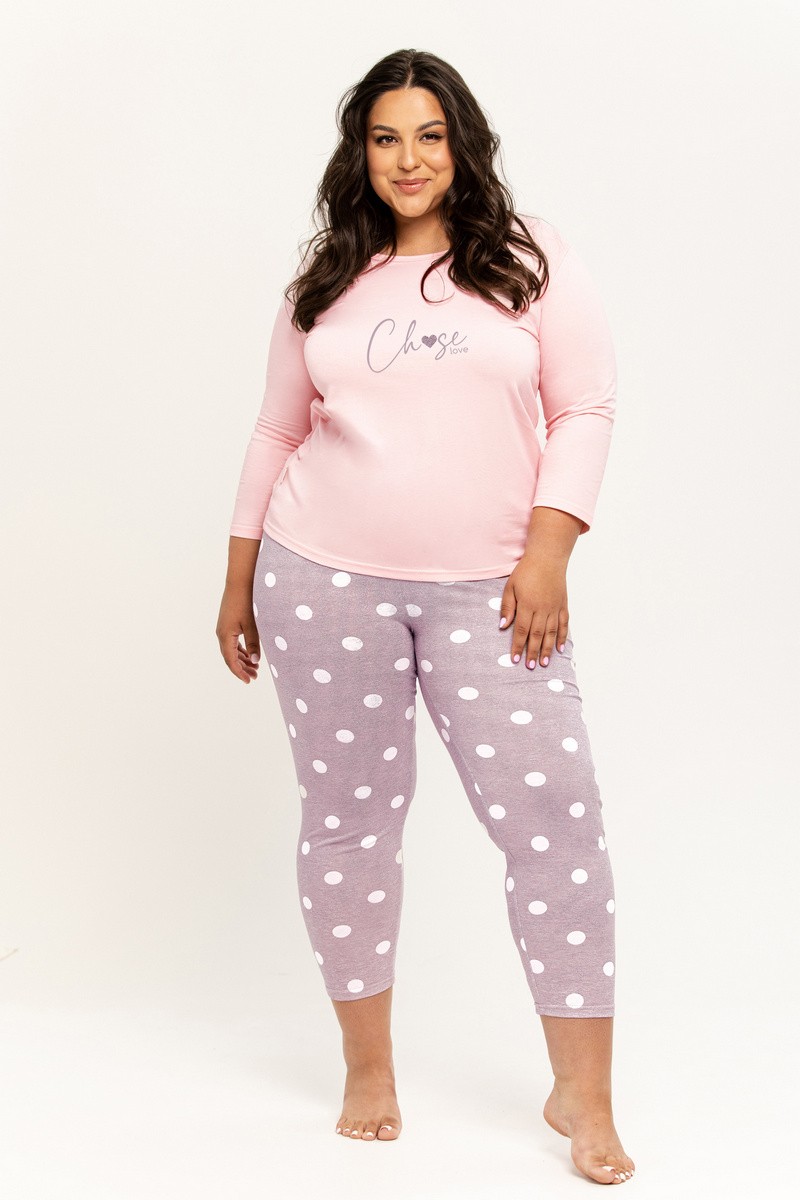 Хлопковая женская пижама со штанами LIBBY от европейского производителя Taro. В комплекте кофта с нагрудным принтом и узорные брюки на резинке. В РАЗМЕРАХ XXL-3XL рукав 3/4, брюки 7/8.