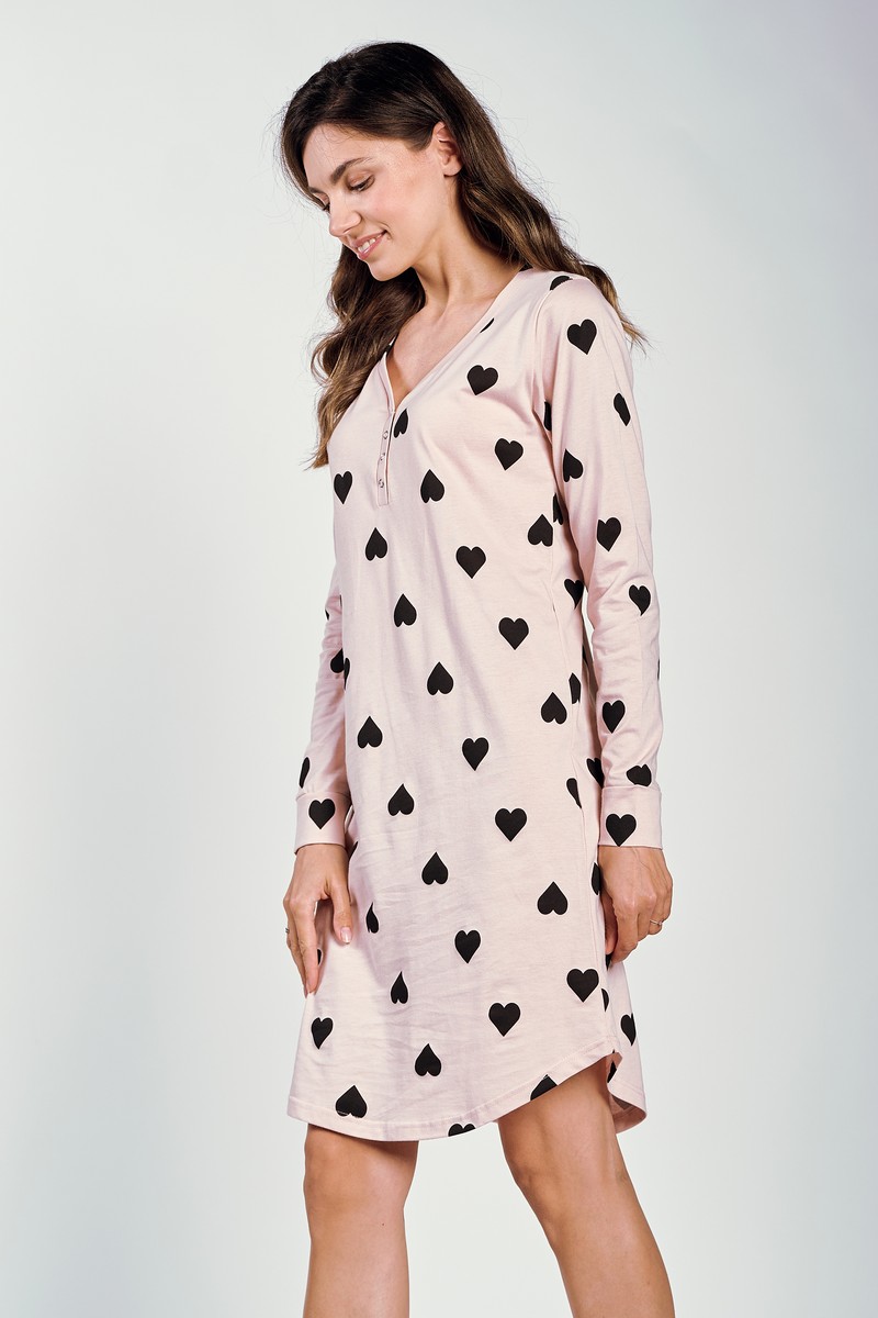 Хлопковая женская сорочка LIBBY от европейского производителя Taro. Узорное изделие с длинным рукавом и ассиметричным подолом, на груди планка из кнопок.