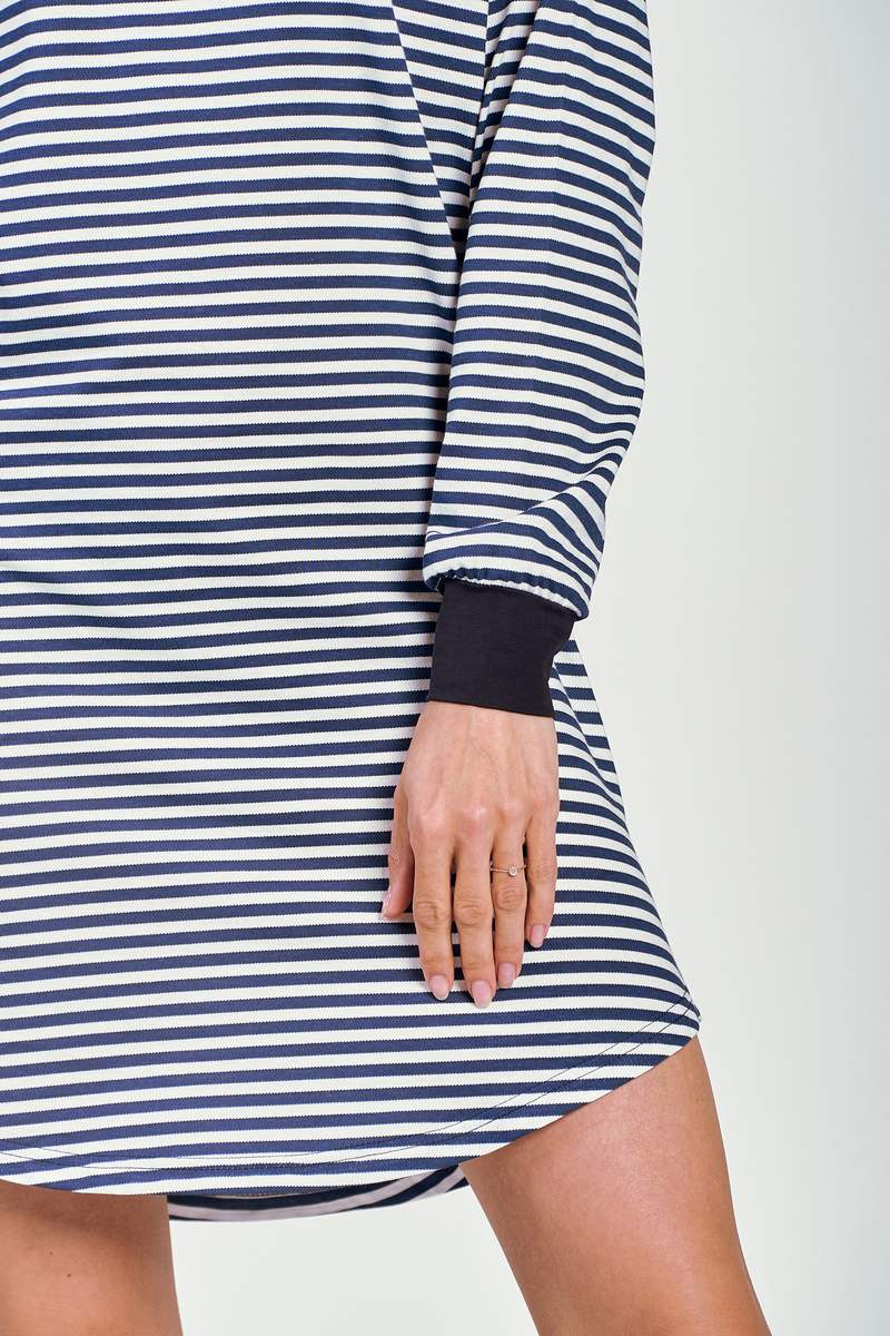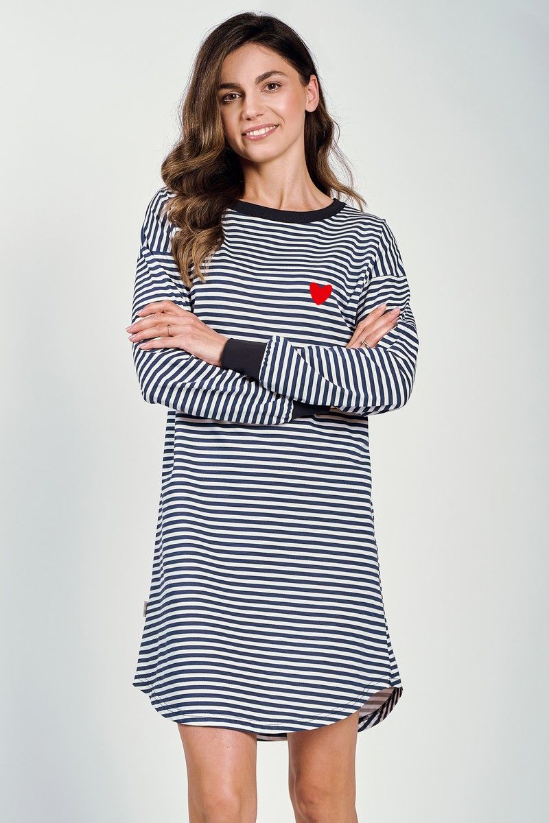 Хлопковая женская сорочка TRUDY от европейского производителя Taro. Изделие в полоску с ассиметричным подолом и манжетами.