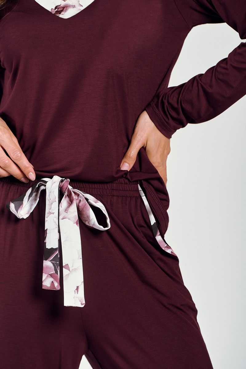 Женская вискозная пижама со штанами INDY от европейского производителя Taro. Выполнена из вискозы. В комплекте однотонные кофта с рукавами 3/4 и брюки 7/8. Изделие с карманами и цветочными вставками.
