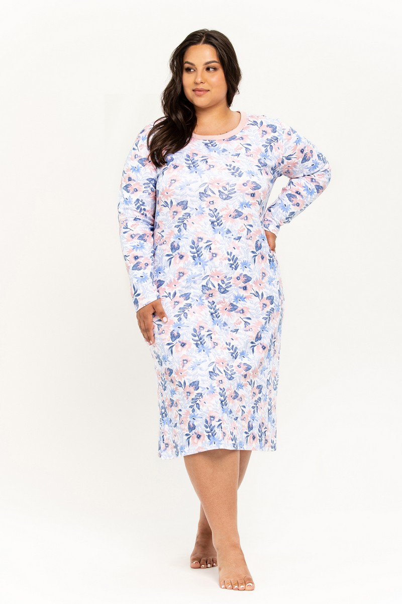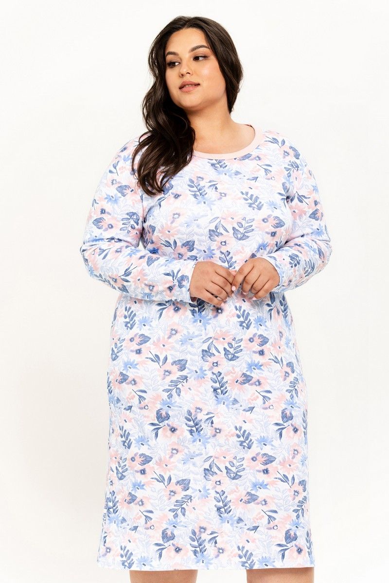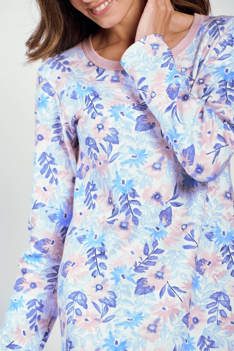 Женская трикотажная сорочка GINNY от европейского производителя Taro. Узорное изделие с длинным рукавом. Изготовлена из более плотного хлопка - интерлок джерси - это трикотаж двойного плетения с гладкой, шелковистой поверхностью с обеих сторон.