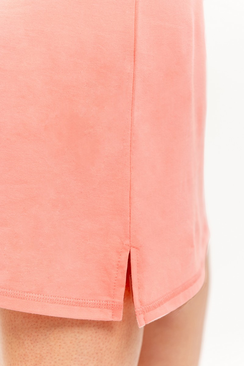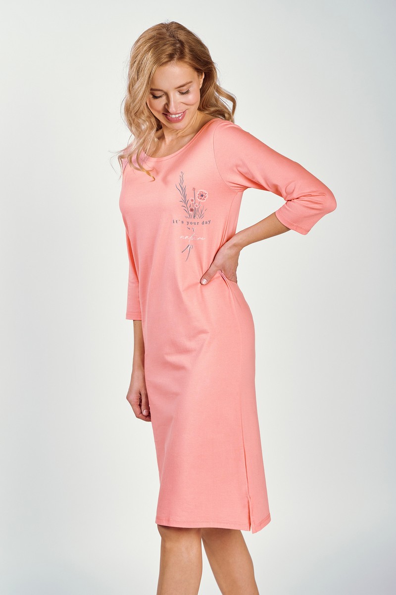 Женская хлопковая сорочка ASHLEY от европейского производителя Taro. Однотонное изделие с рукавом 3/4, нагрудным принтом и разрезами по подолу.
