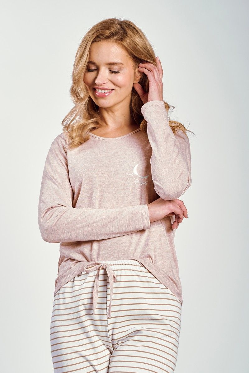 Хлопковая женская пижама со штанами GINA от европейского производителя Taro. В комплекте однотонная кофта и брюки в полоску.