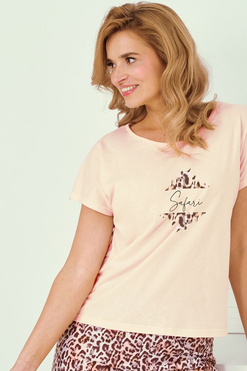 Женская хлопковая пижама CHRISSY от европейского производителя Taro. Пижама состоит из свободной футболки с коротким рукавом и удобных капри средней посадки, которые имеют эластичную резинку на поясе, что обеспечивает комфортную посадку.