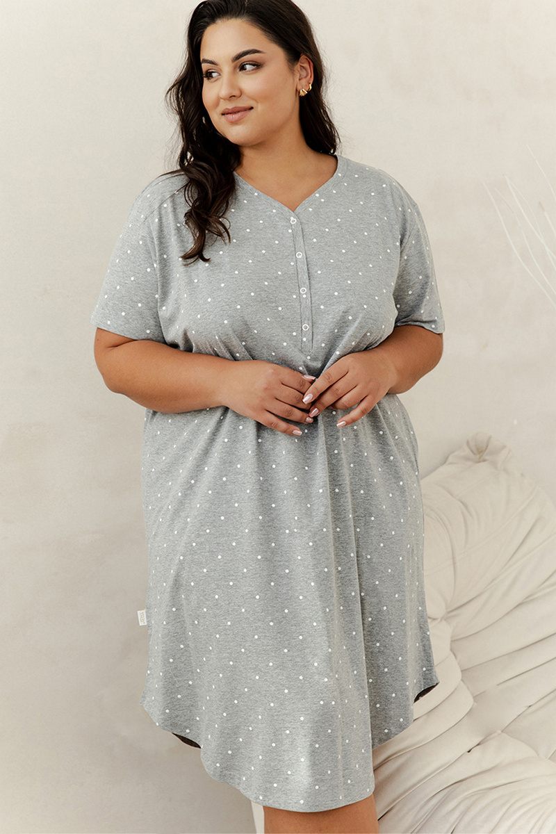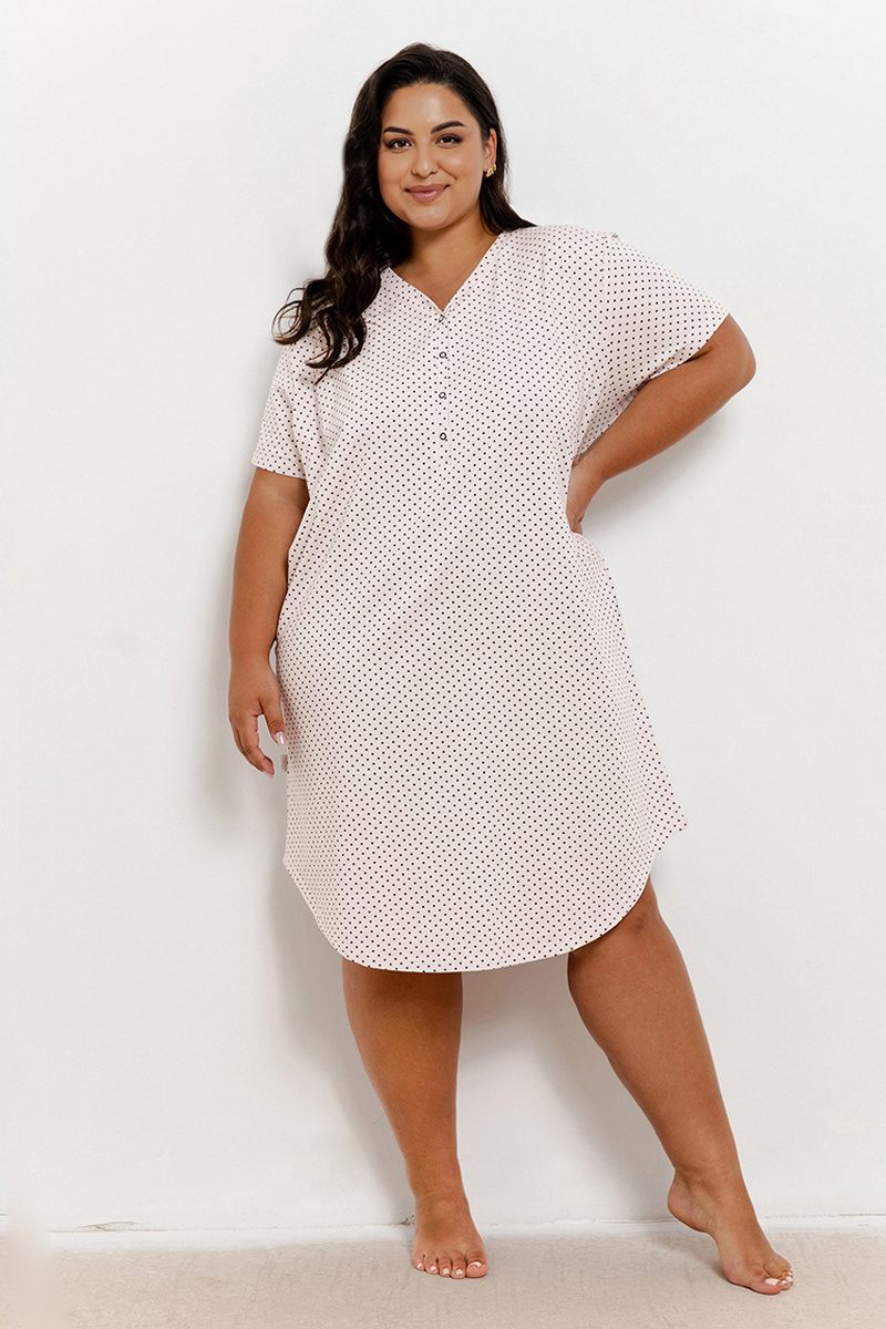 Женская хлопковая сорочка MEG от европейского производителя Taro. Изделие с короткими рукавами, на груди планка с пуговицами, ассеметричный подол. Состав: