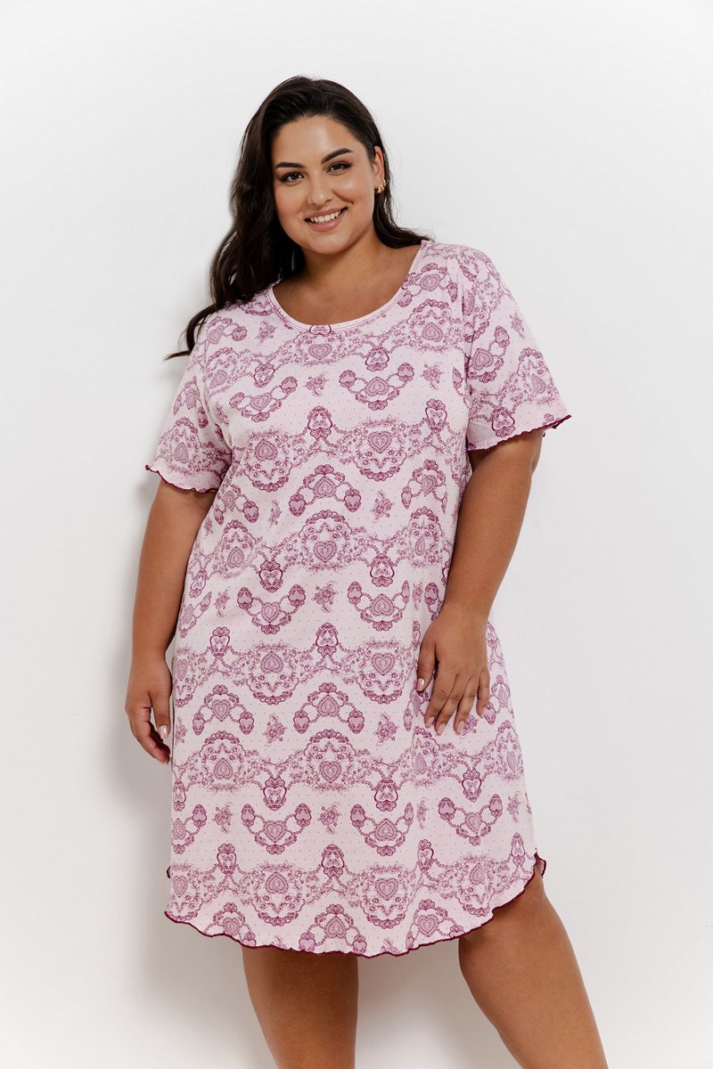 Женская хлопковая сорочка TARA от европейского производителя Taro. Изделие с короткими рукавами, длиною выше колена, асимметричный низ. Очень комфортная и приятная к телу. Отлично подойдет для сна и отдыха.