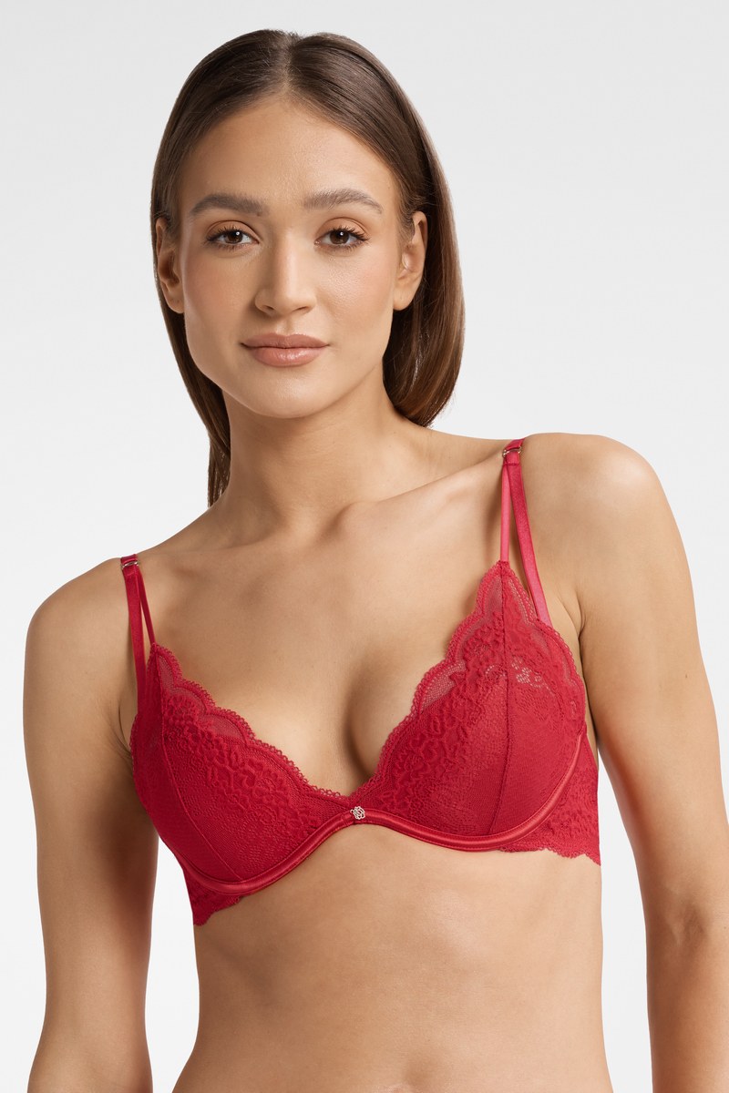 Бюстгальтер TRIXIE от европейского производителя Esotiq. Чашка пуш-ап на кости. Выполнен из кружева. Трехступенчатая застежка. Несъемные регулируемые бретели.