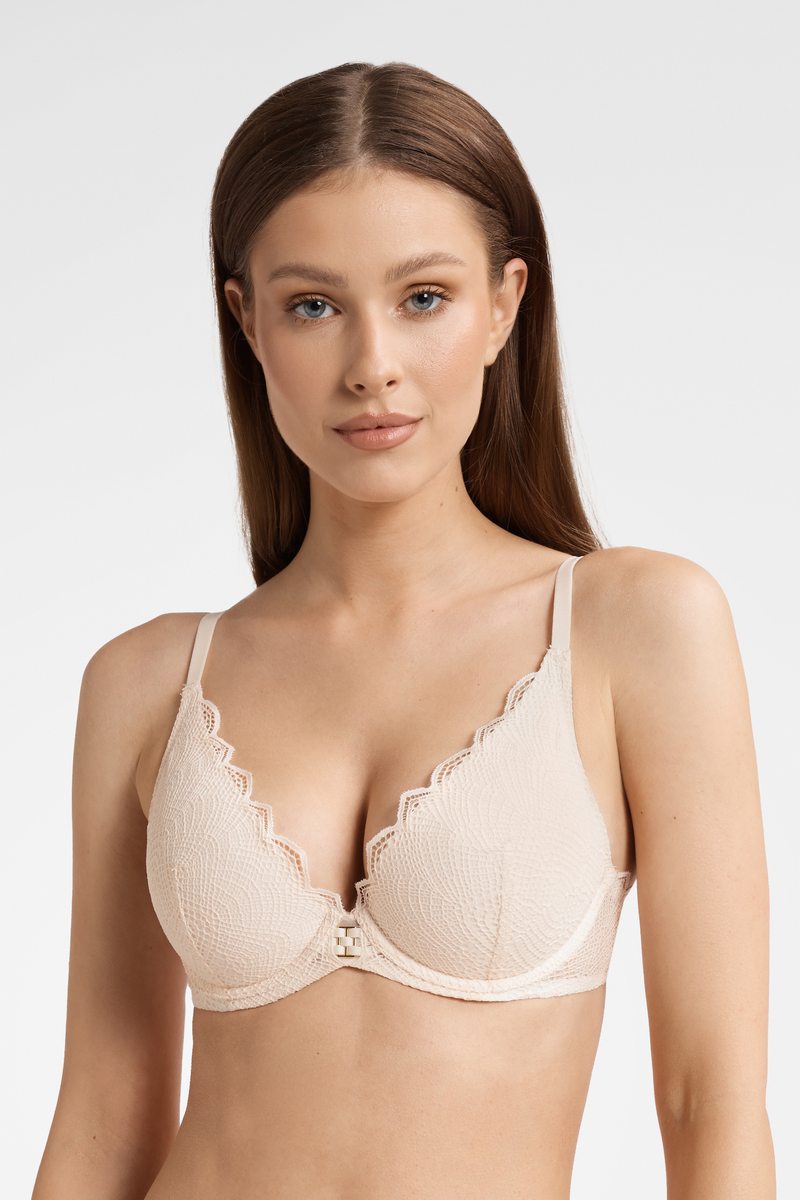 Бюстгальтер TWIGGY от европейского производителя Esotiq. Бюстгальтер с чашкой из тонкого поролона на кости. Выполнен из кружева и микротюля. Двух ступенчатая застежка на спине. Несъемные регулируемые бретели.