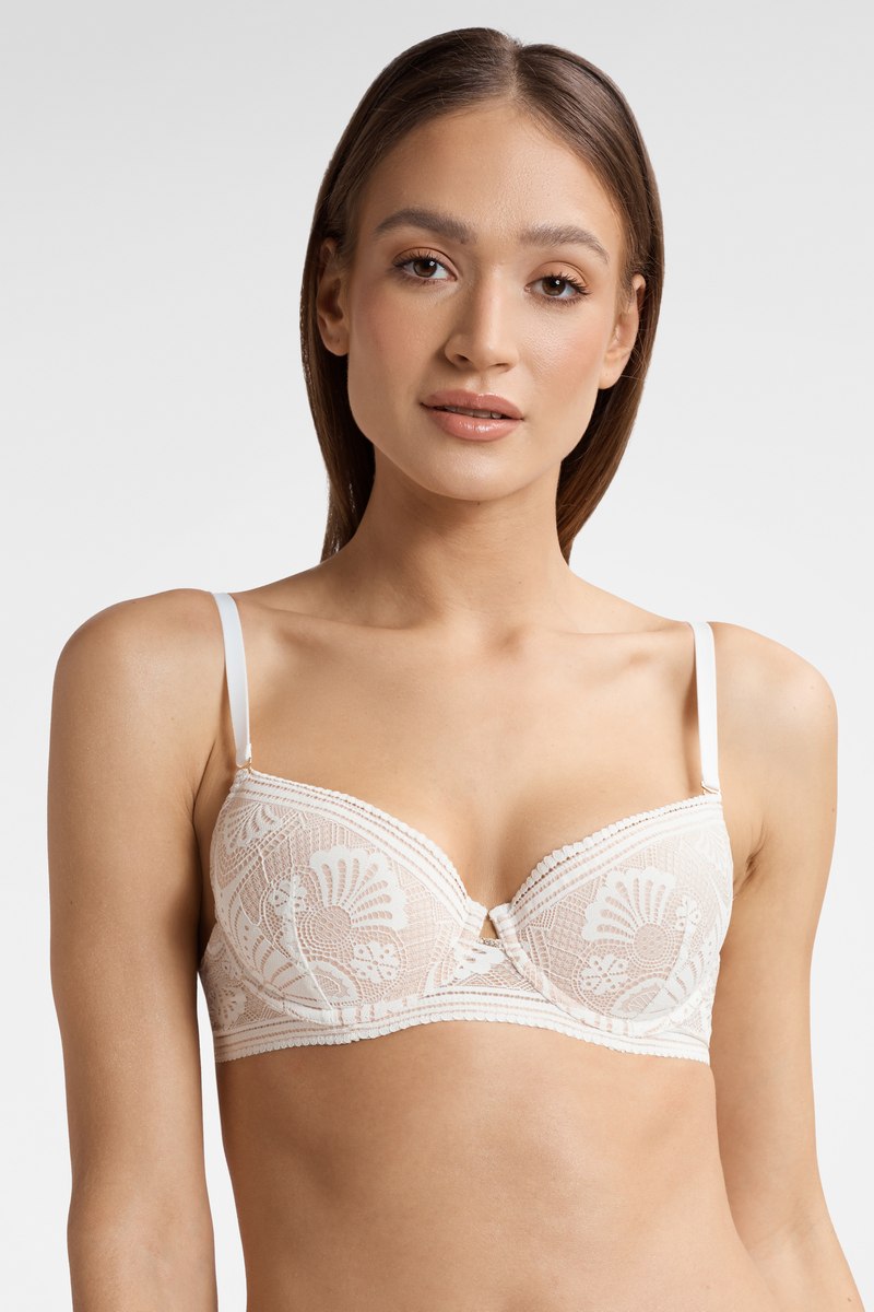 Бюстгальтер TINGLE от европейского производителя Esotiq. Кружевной бюстгальтер со съемным пуш-ап на каркасах. Чашка на базе Kassidy! Съемные регулируемые бретели. Трехступенчатая застежка на крючки. Внутренняя поверхность чашек хлопковая.