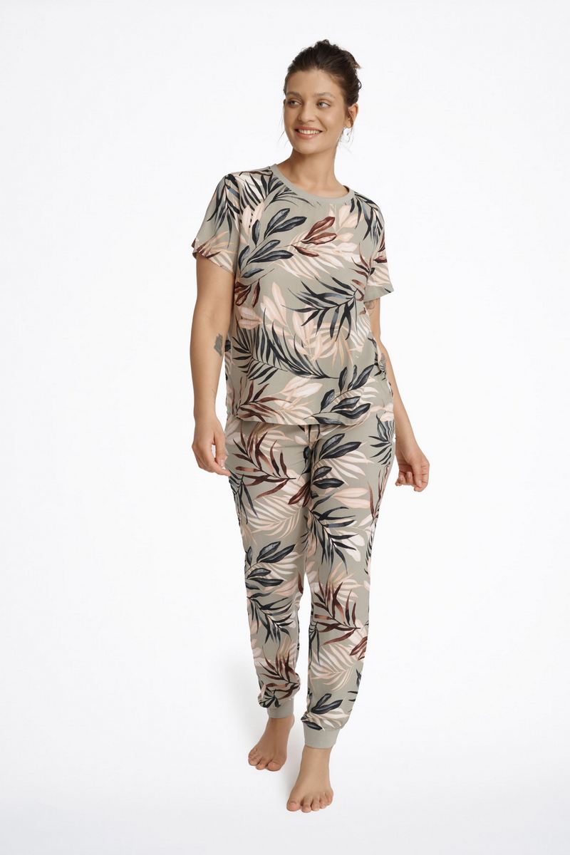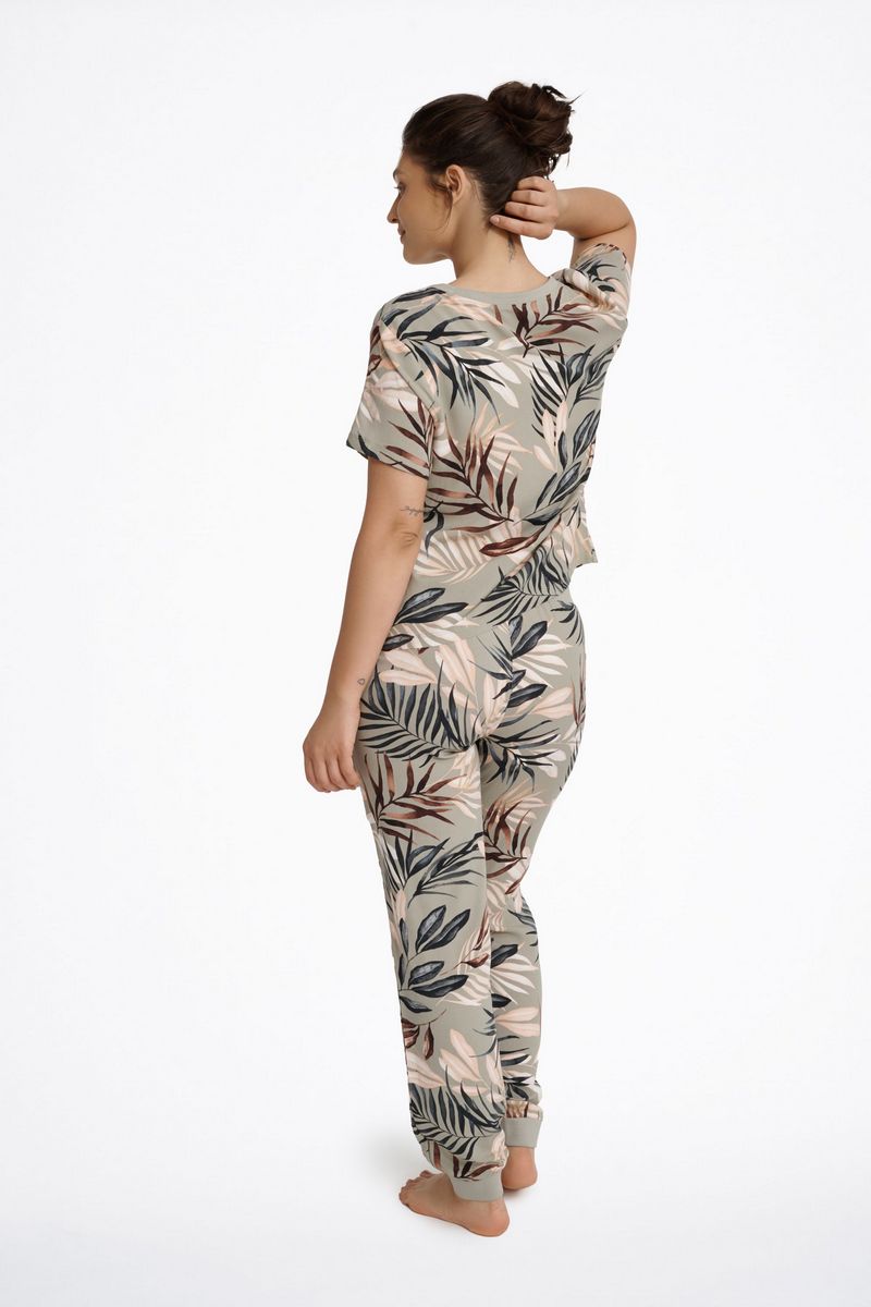 Нежная, приятная к телу пижама LETO. Брюки на удобной резинке и с манжетами по низу. Цветочный принт.
