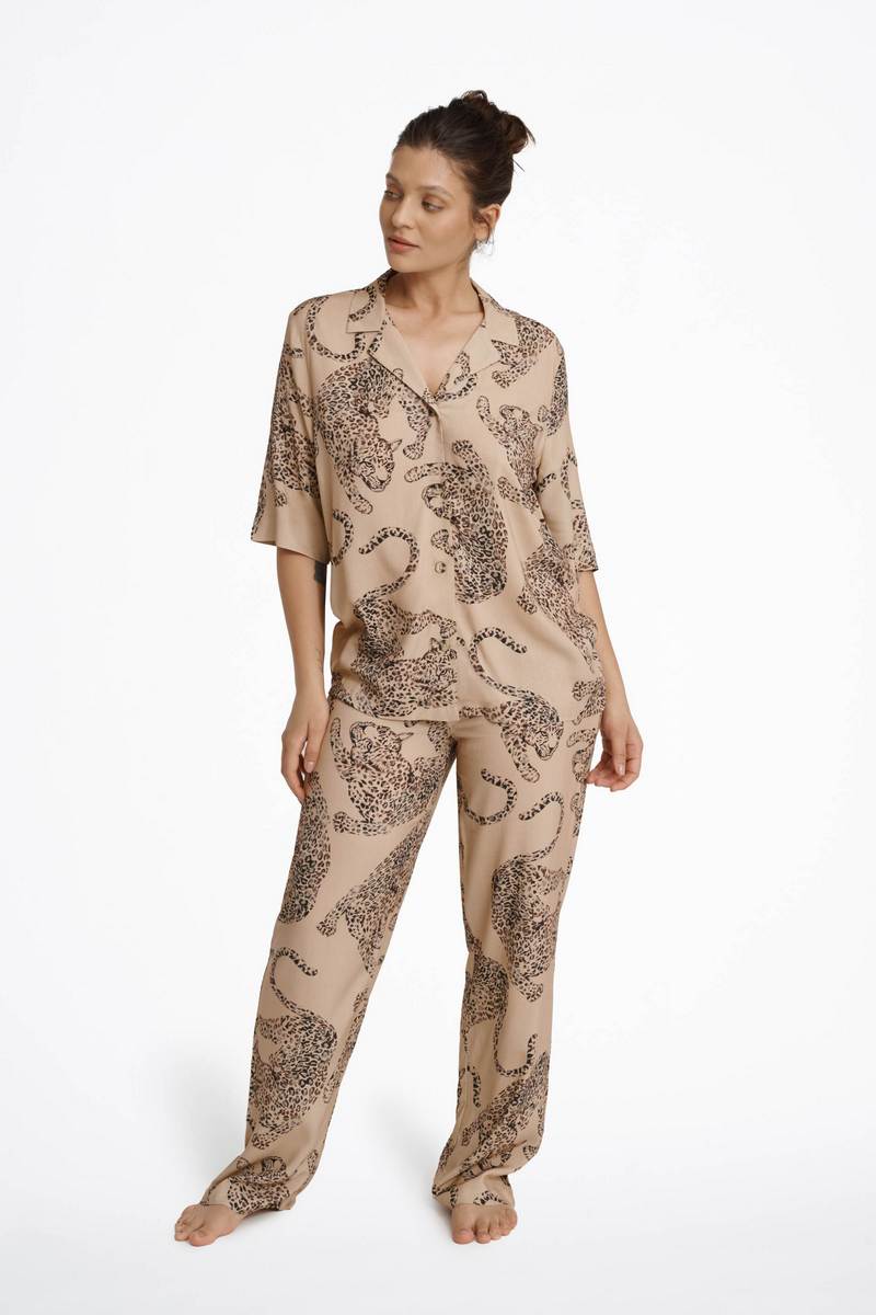 Нежная, приятная к телу пижама LOVABLE свободного кроя. Рубашка на пуговицах. Принт изделия в стиле леопарда.