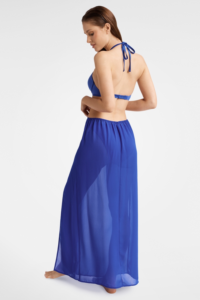 Пляжная юбка со шнурком в поясе. Длинная летящая модель из быстросохнущего материала.