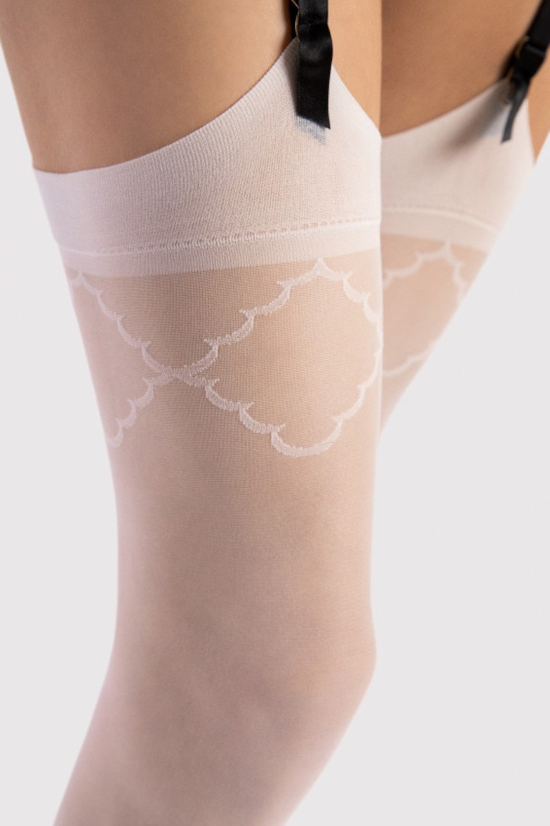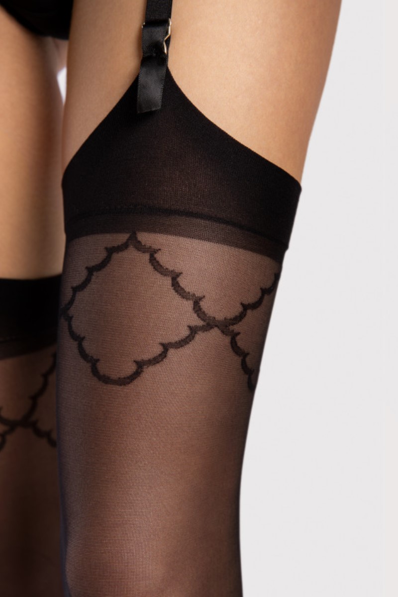 Чулки SOGNO 20 DEN. Прочный полуглянцевый капрон. В верхней линии эффектный узор. Невидимо усиленные гладкие пальцы.
