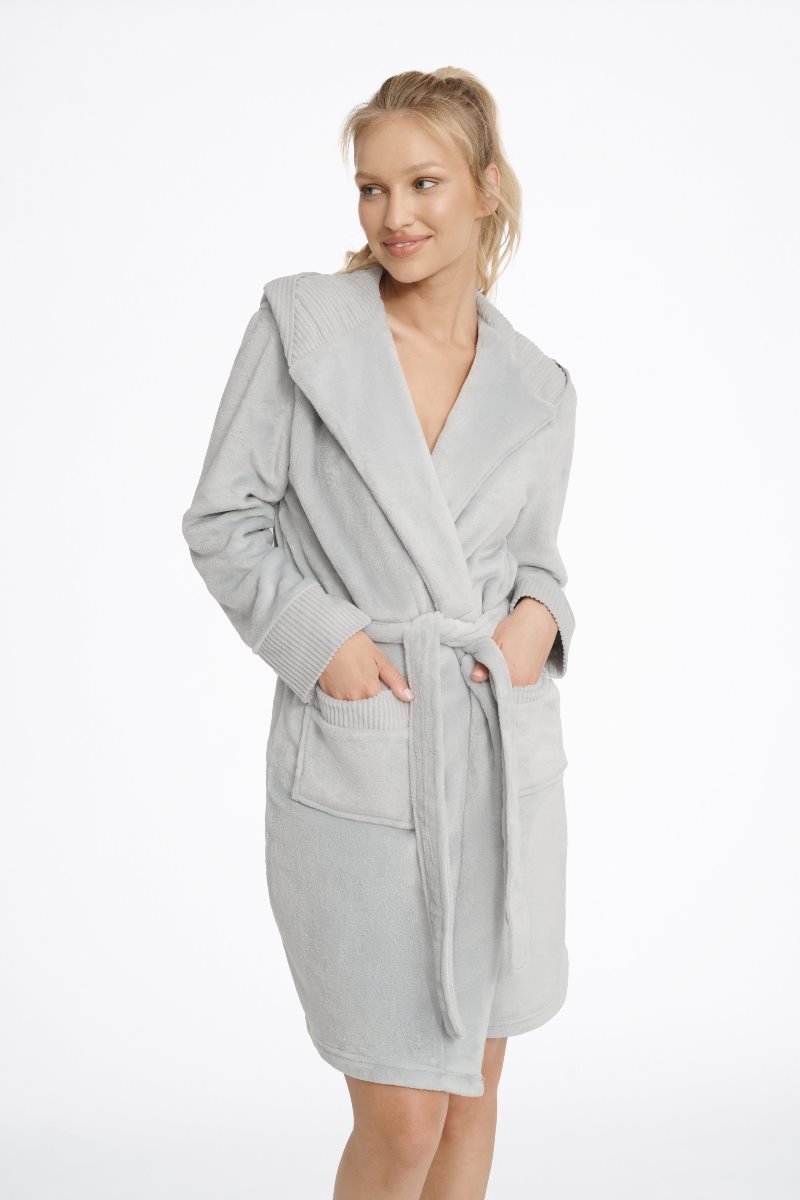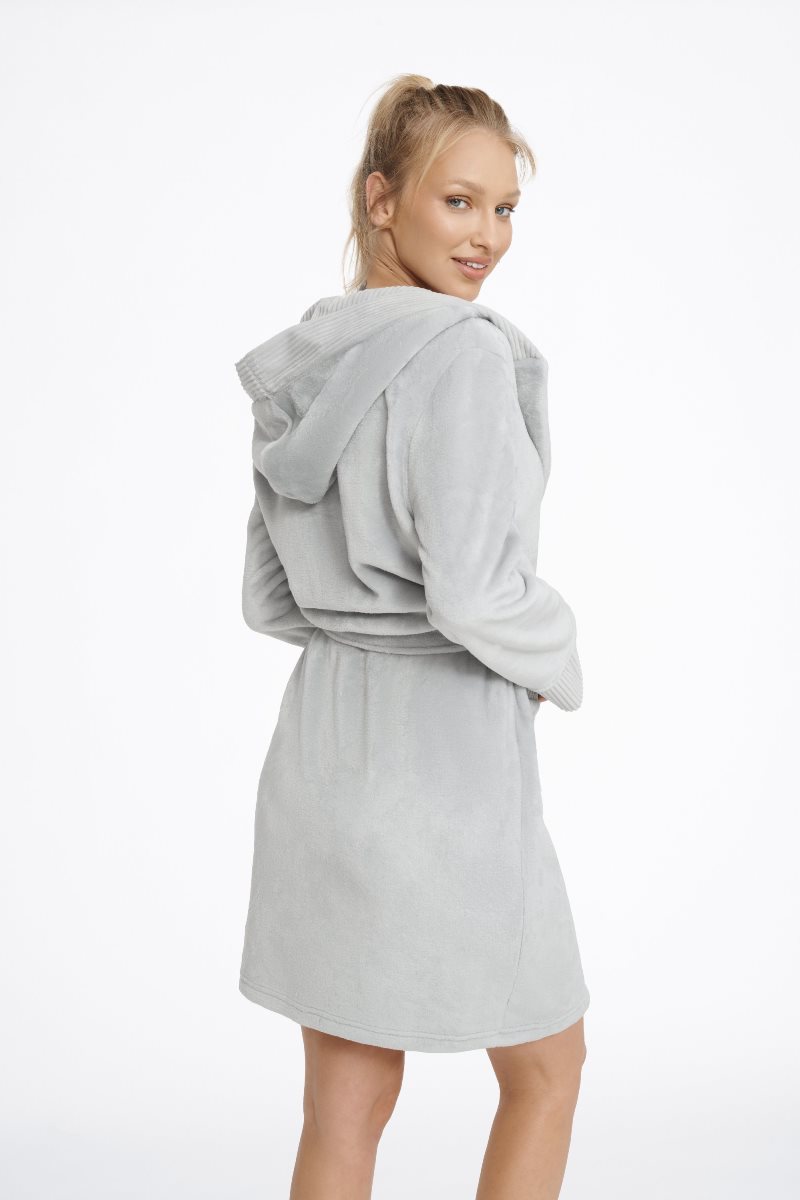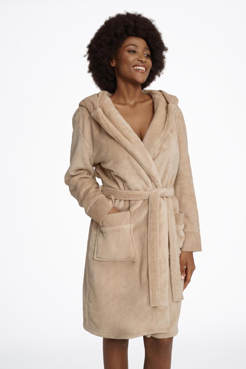 Теплый и уютный халат. Изделие на запахе, с карманами и капюшоном.