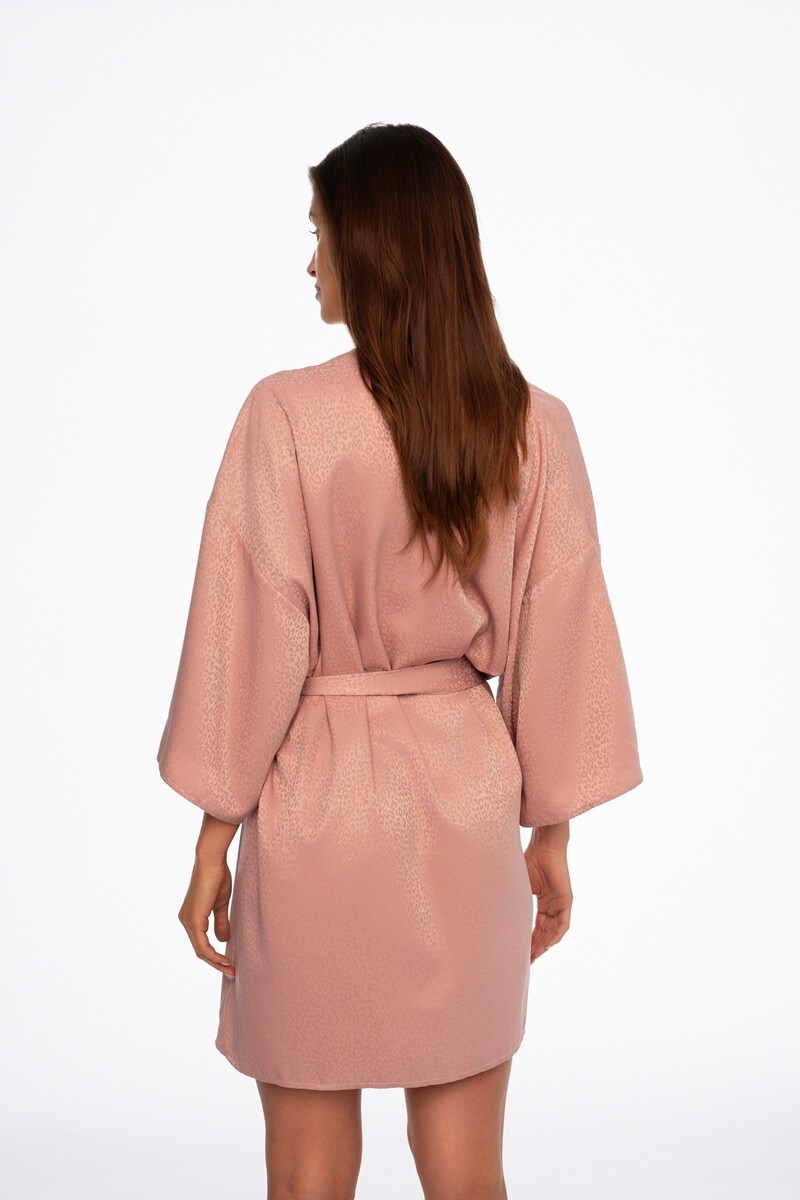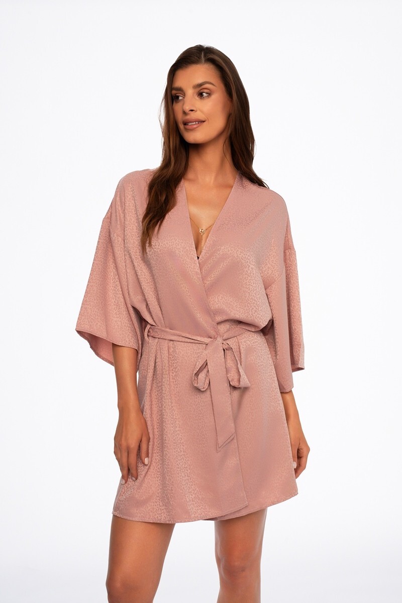 Халат женский 41229 DARREN. Изделие с поясом, на запахе, с внутренней завязкой. Укороченный широкий рукав. Материал - жаккардовый сатин.