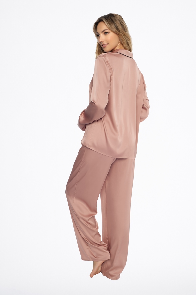 Пижама женская со штанами 41490 DILL. Рубашка свободного кроя на пуговицах. Штаны с поясом на резинке. Материал - эластичный сатин.