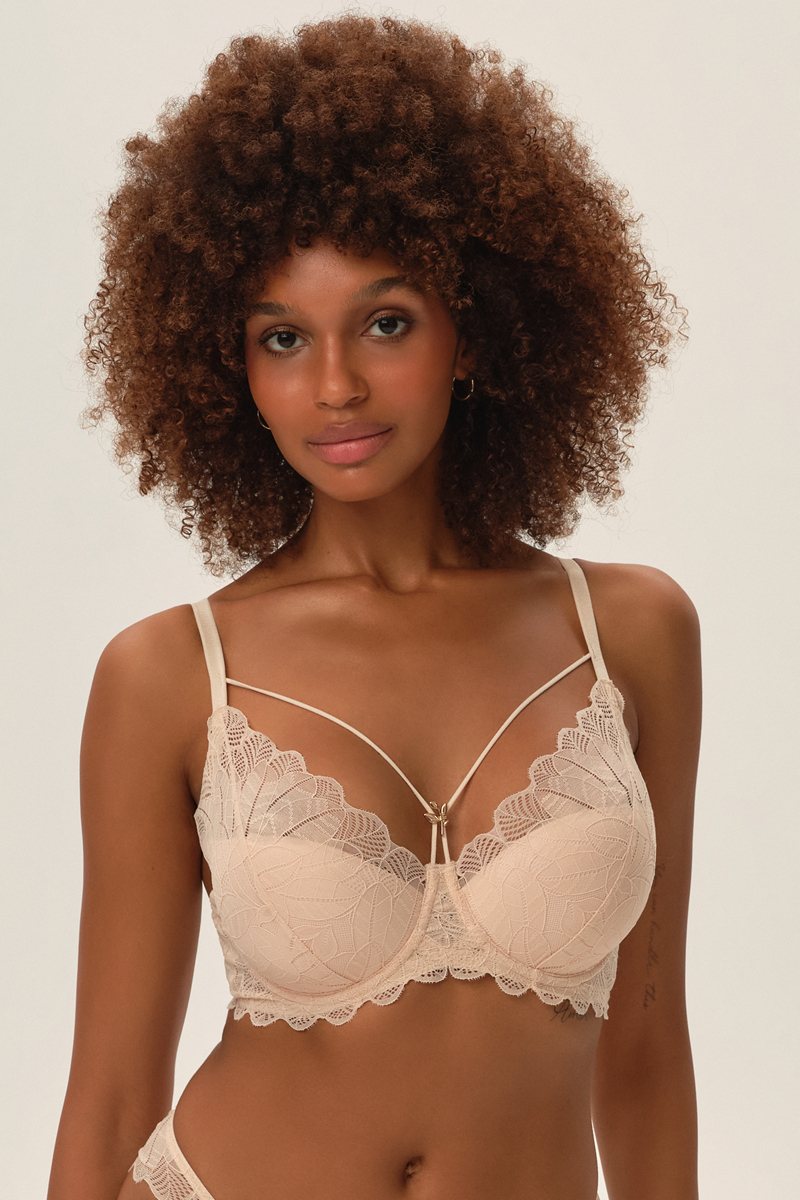 Кружевной бюстгальтер 41743 OATH. Чашка тонкий поролон на кости, на базе Panay. Несъемные регулируемые бретели. Спереди украшен несъемными стрепами. Спинка на подкладе из микросетки.