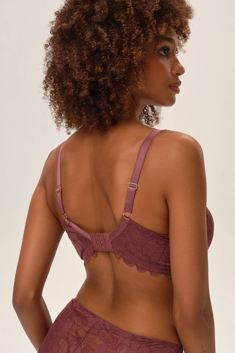 Кружевной бюстгальтер 41743 OATH. Чашка тонкий поролон на кости, на базе Panay. Несъемные регулируемые бретели. Спереди украшен несъемными стрепами. Спинка на подкладе из микросетки.