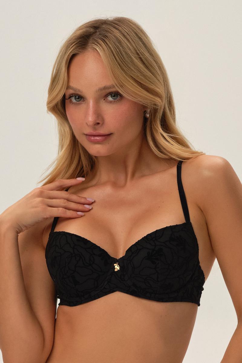 Кружевной бюстгальтер 41780 ORGANIQUE от европейского производителя Esotiq. Чашка на кости со съемными вкладышами push up, внутри хлопковый подклад. Изделие выполнено на базе Kassidy. Украшение - золотая очаровательная подвеска.