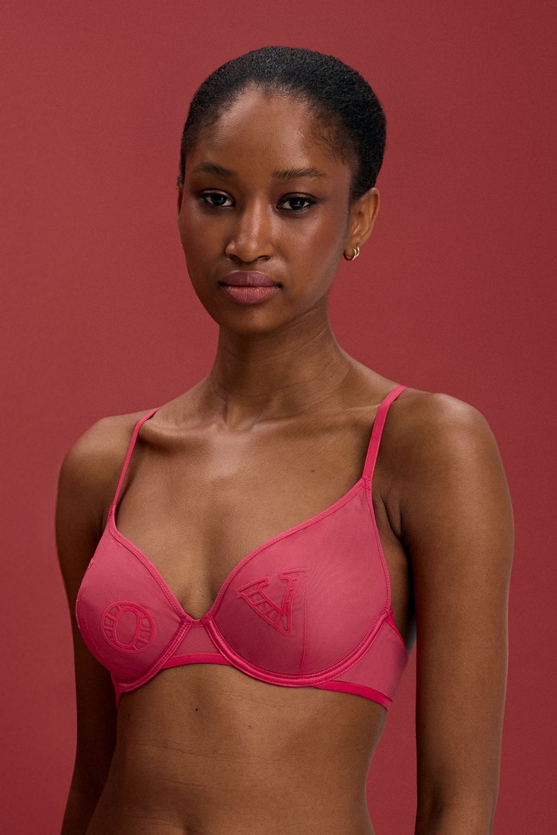 Бюстгальтер от европейского производителя Esotiq. Мягкая чашка на кости. На базе SOFTLY. Выполнен из микросетки с надписью Lov. Несъемные регулируемые бретели. Золотые аксессуары.
