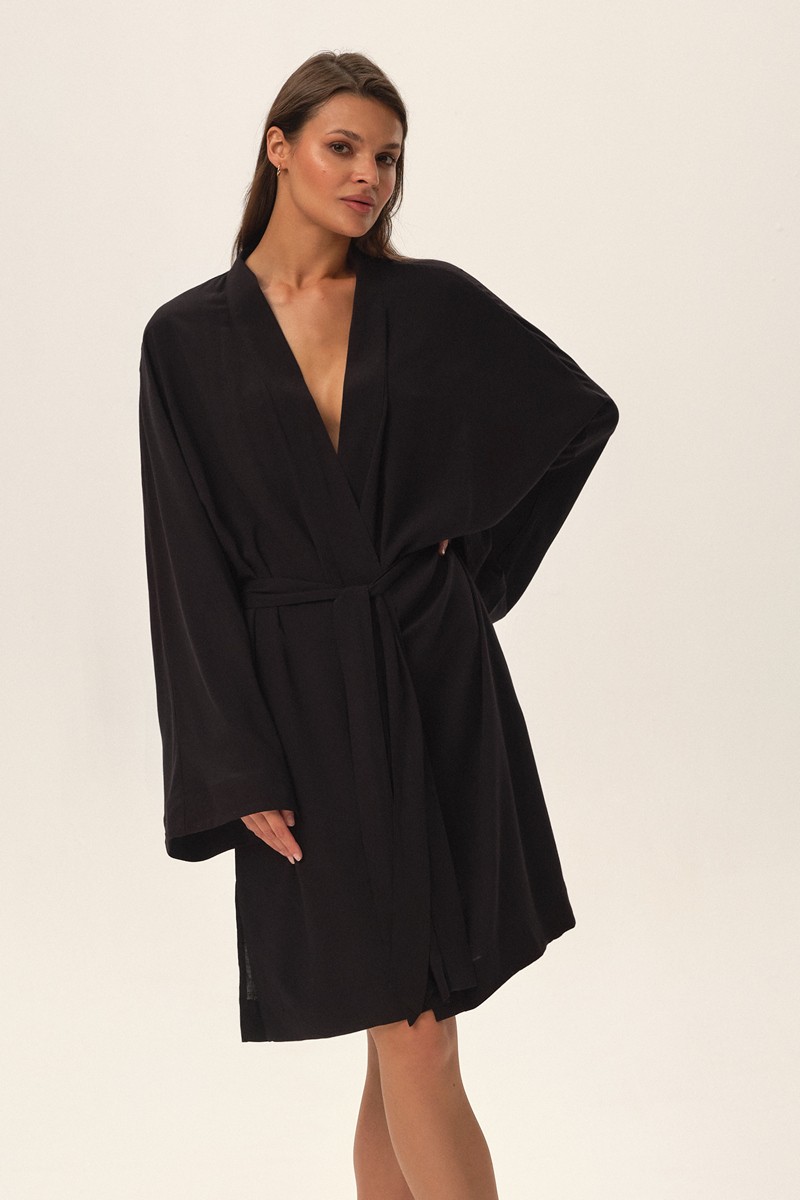Халат женский 42049 JOYA от европейского производителя Esotiq. Халат на запах с поясом, с длинными свободными рукавами. Ткань - вискоза.
